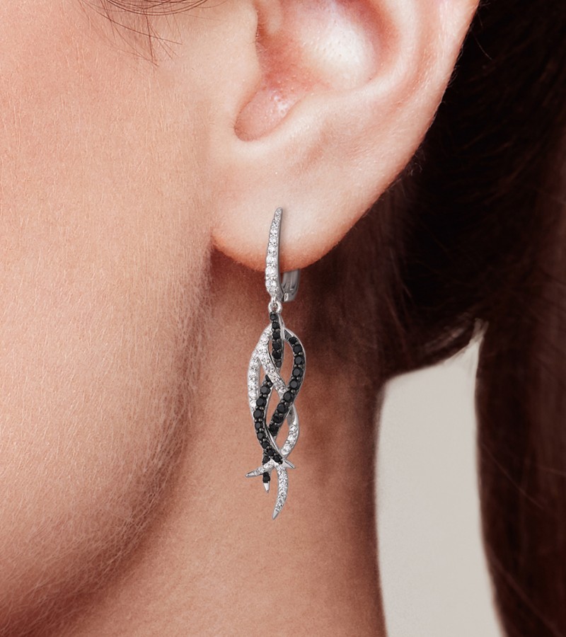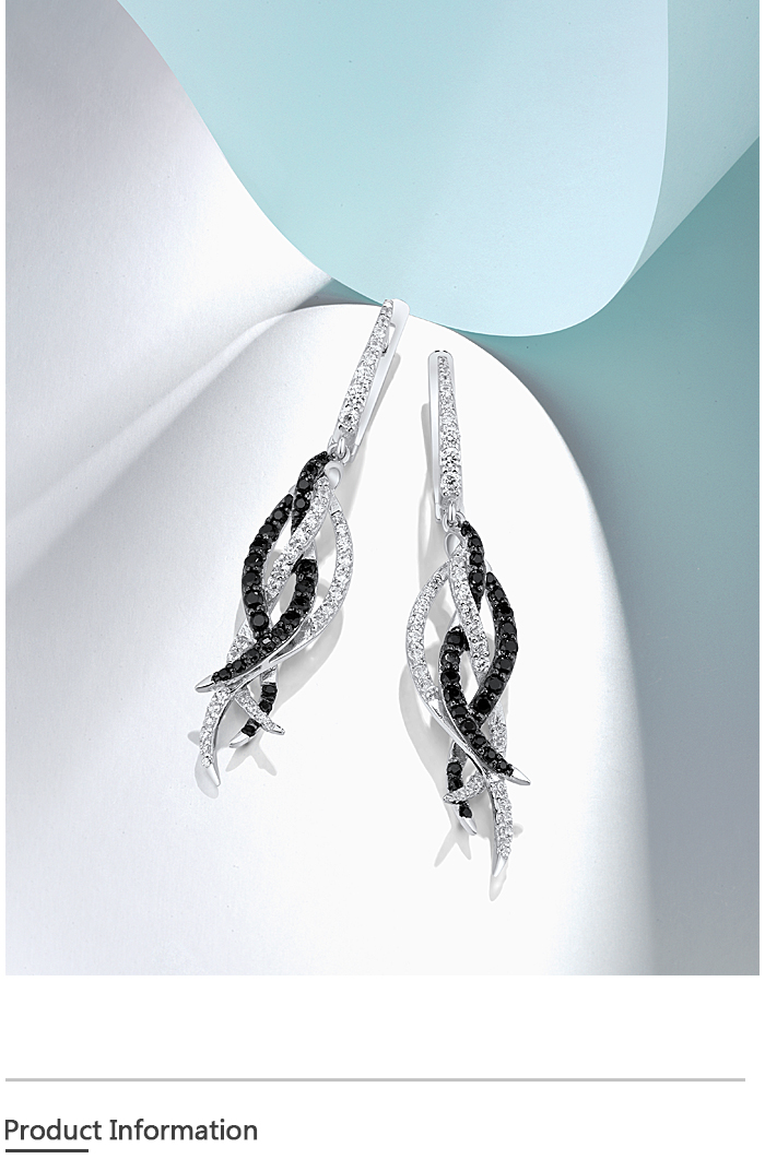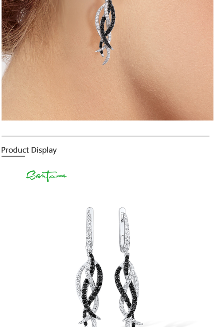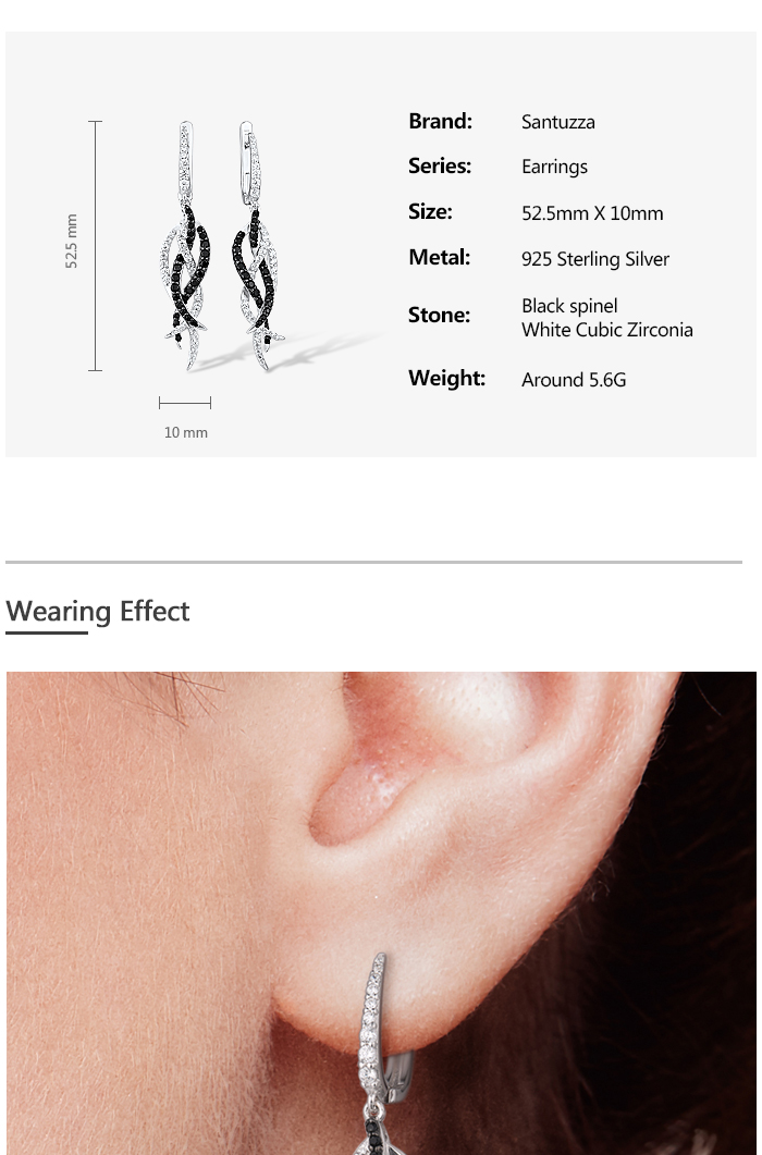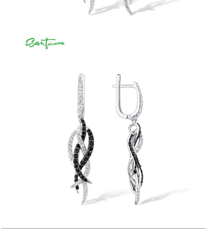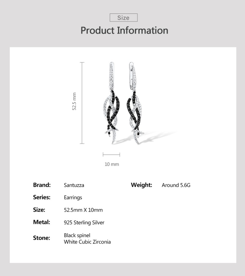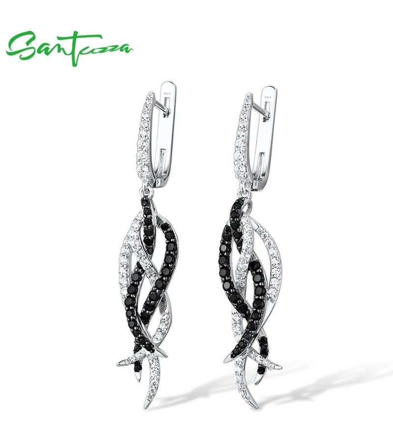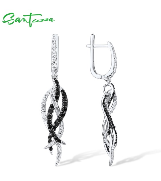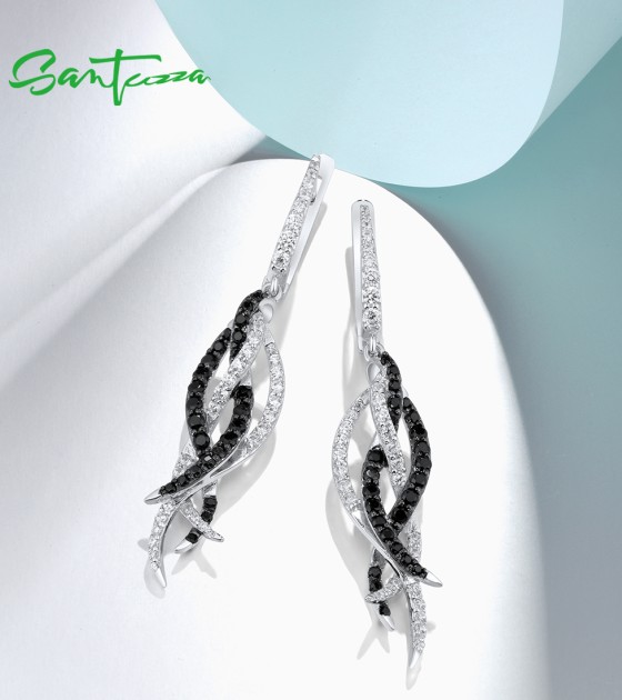 SANTUZZA Earrings 925 Sterling Silver Black Spinel White Cubic Zirconia Jewelry