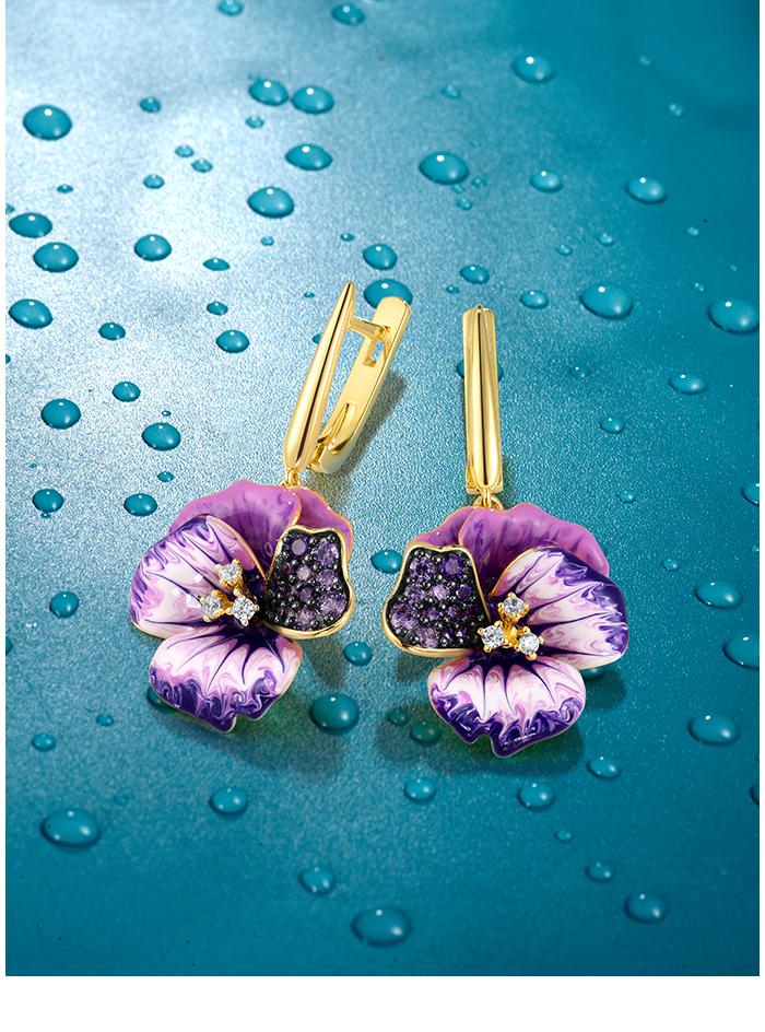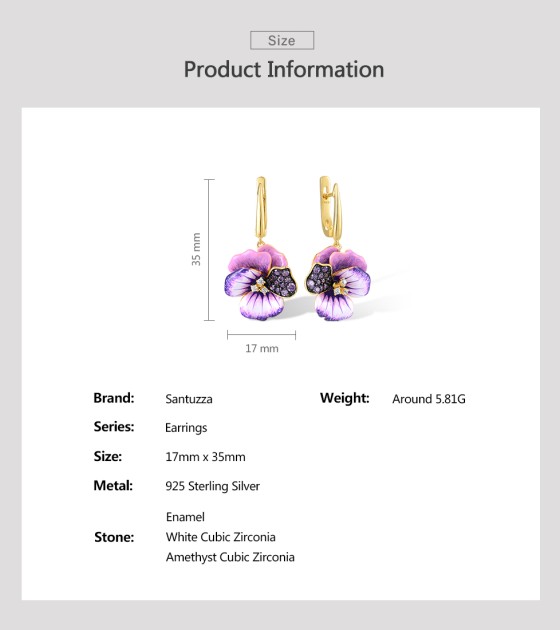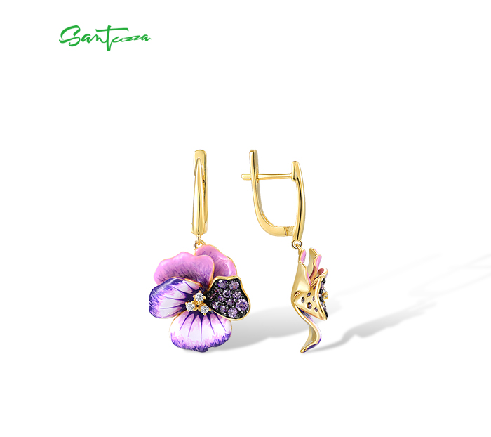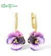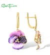 SANTUZZA 925 Sterling Silver Earrings Pink And Purple Peony Enamel Flower Jewelry