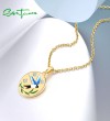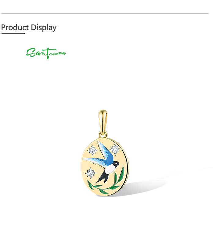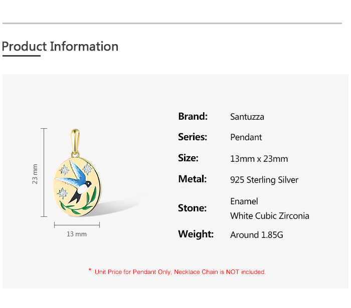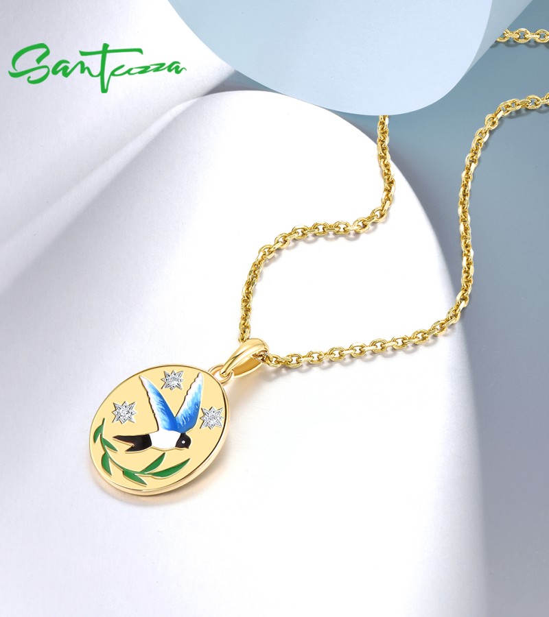 SANTUZZA 925 Sterling Silver Pendant Sparkling White CZ Enamel Blue Bird Jewelry