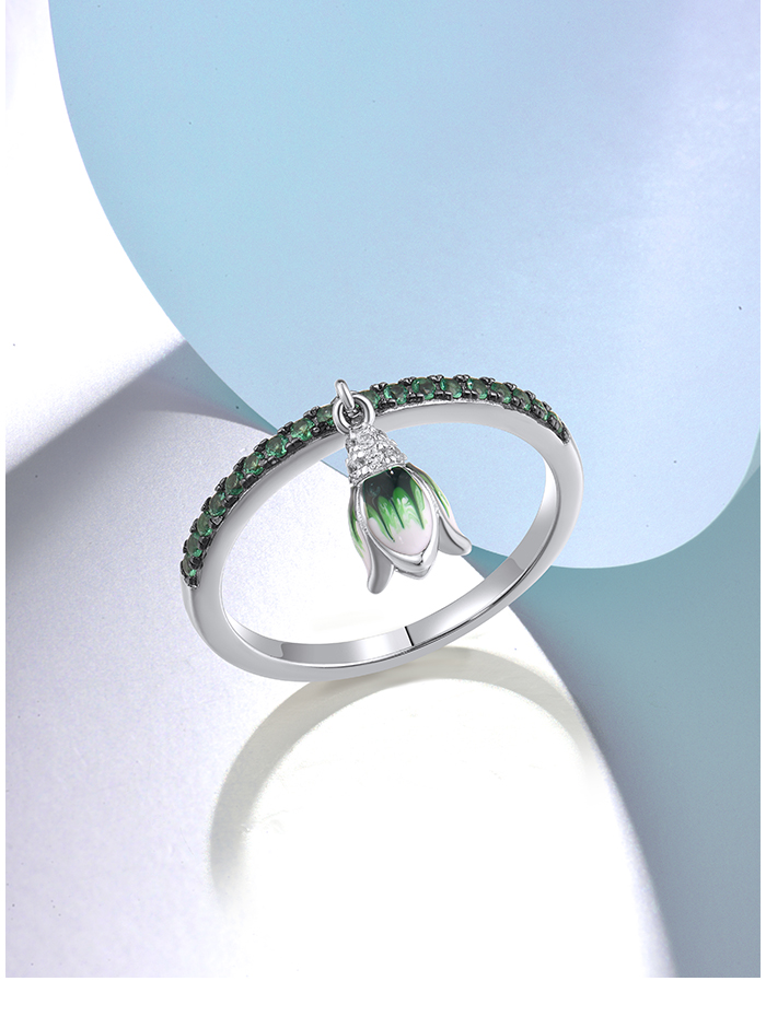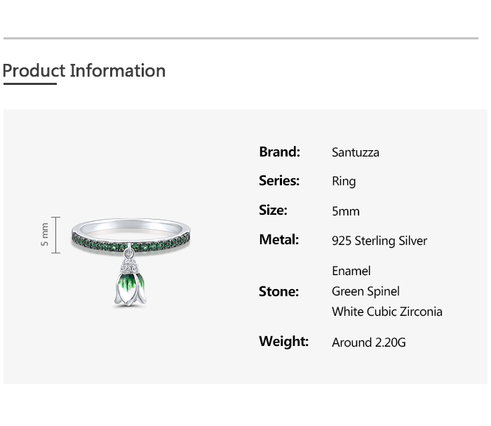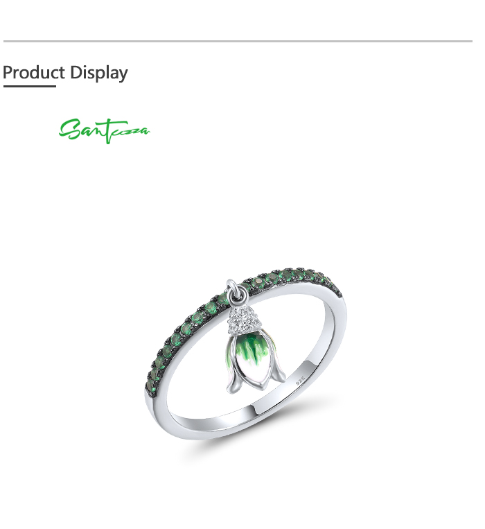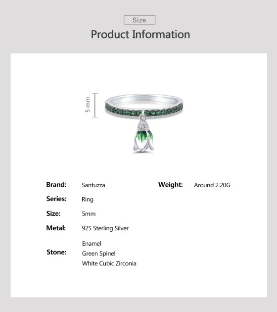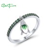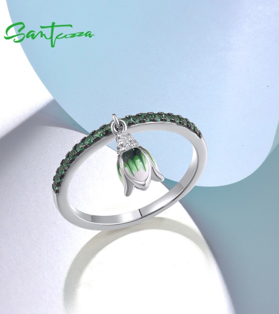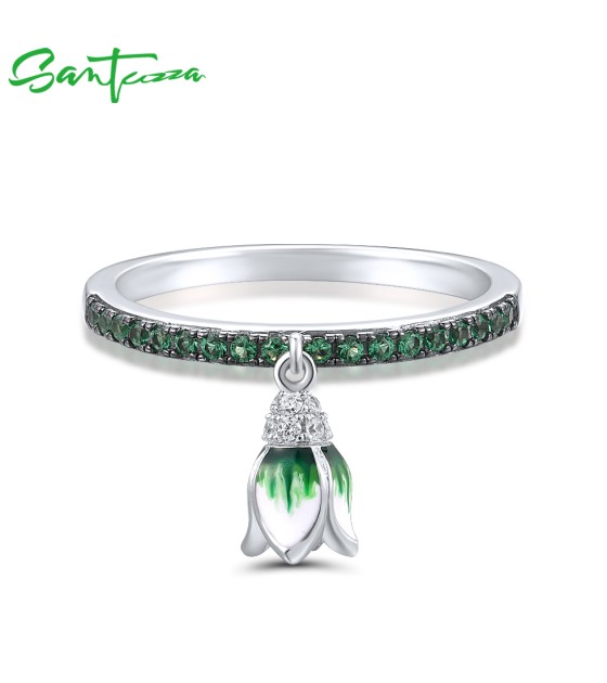 SANTUZZA 925 Sterling Silver Rings Sparkling Green Spinel Danling Tulip Flower Jewelry Enamel