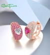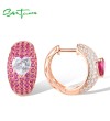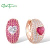 SANTUZZA 925 Sterling Silver Loop Earrings White CZ Created Ruby Sweet Love Heart Jewelry