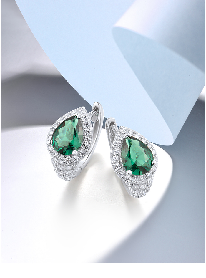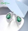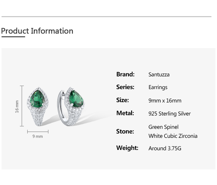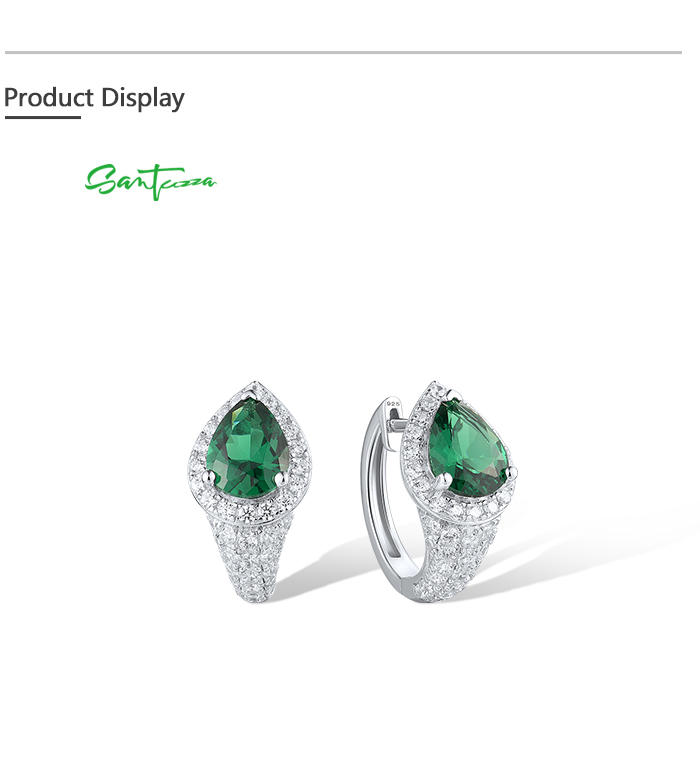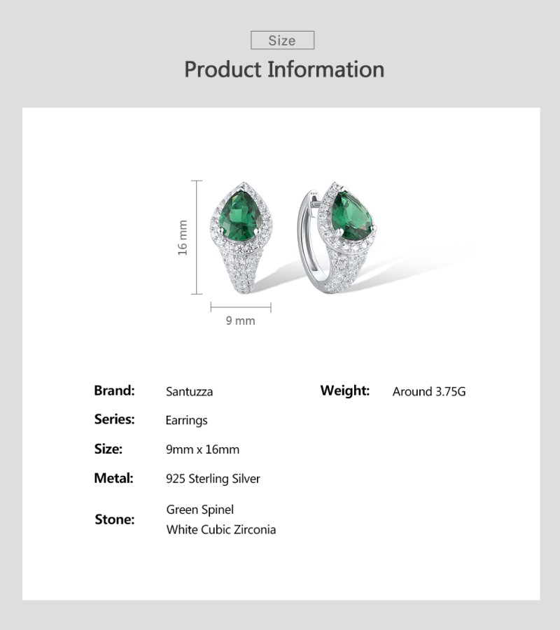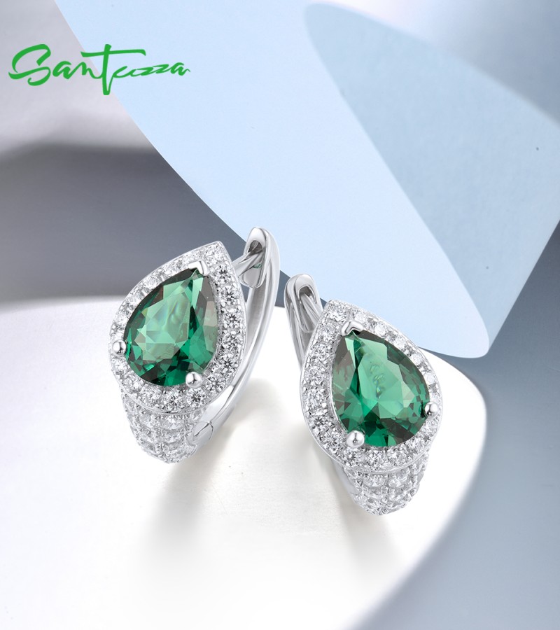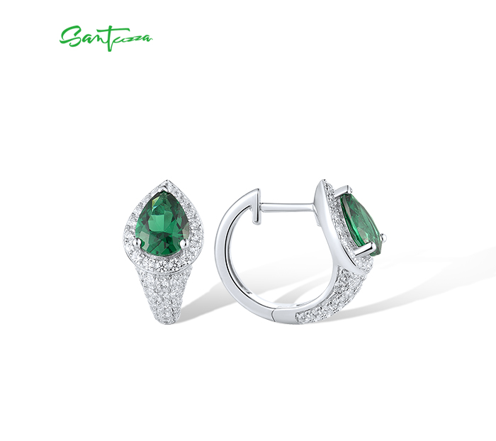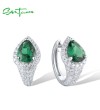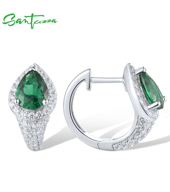 SANTUZZA 925 Sterling Silver Hoop Earrings White CZ Green Spinel Jewelry