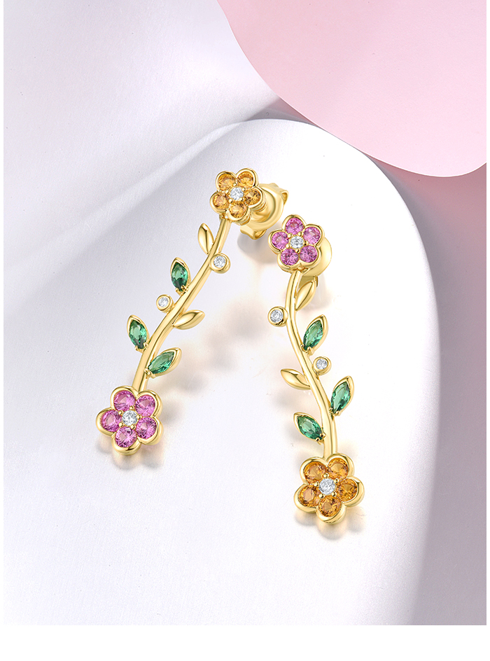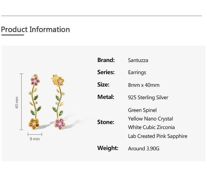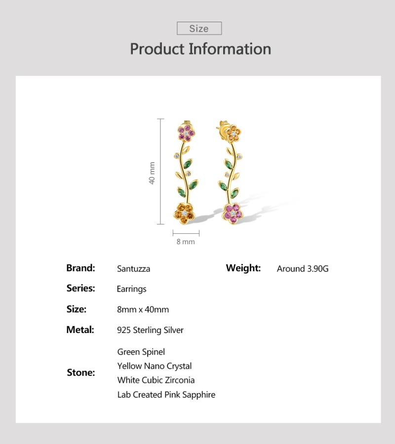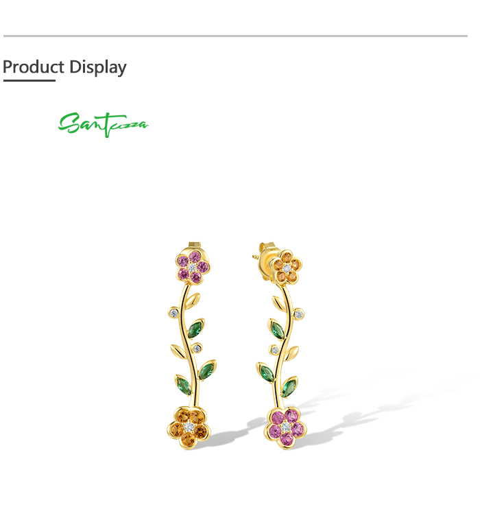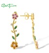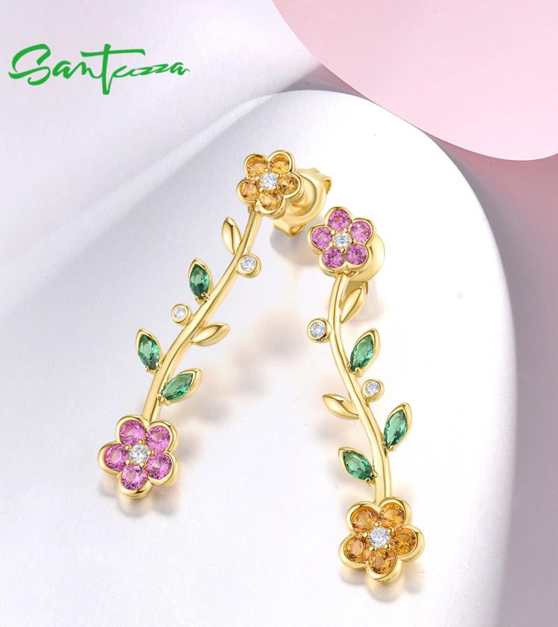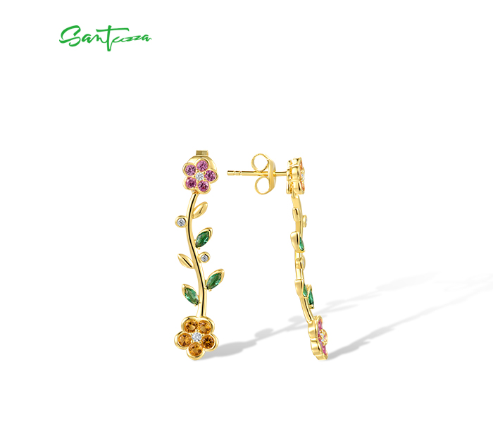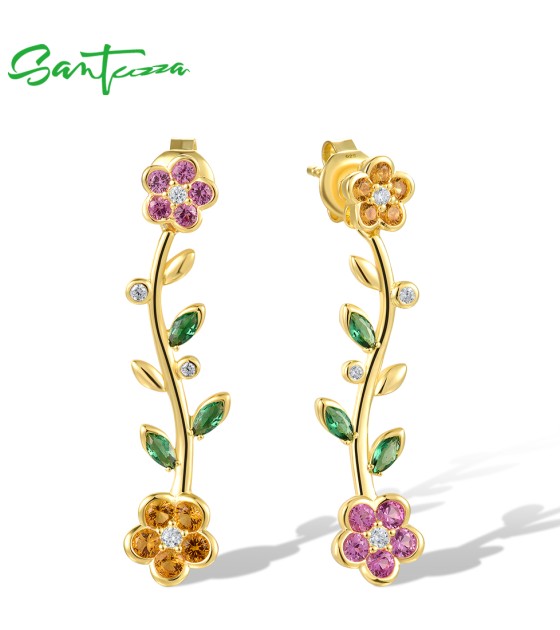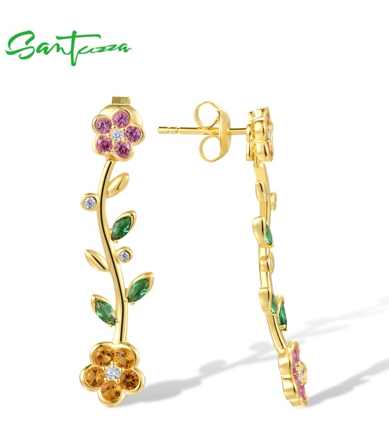SANTUZZA 925 Sterling Silver Dangling Stud Earrings Multicolor Gems Fine Jewelry