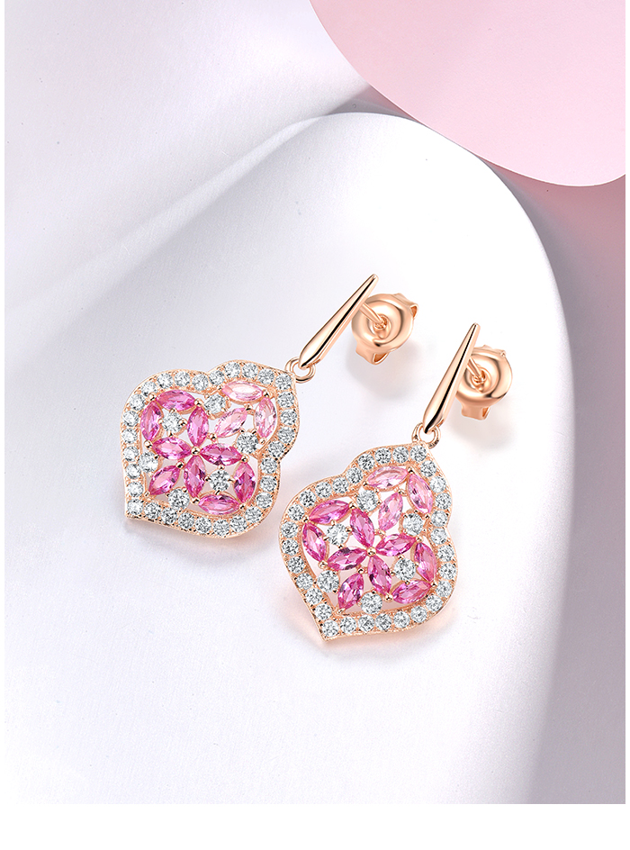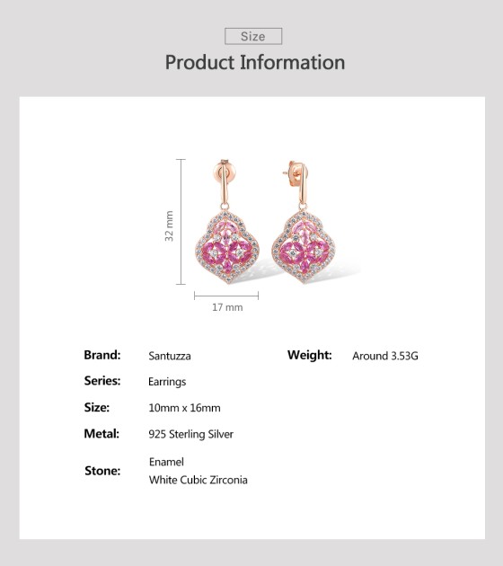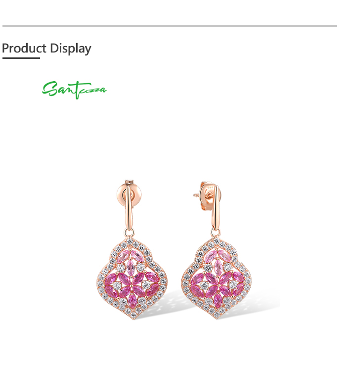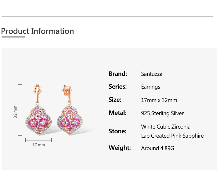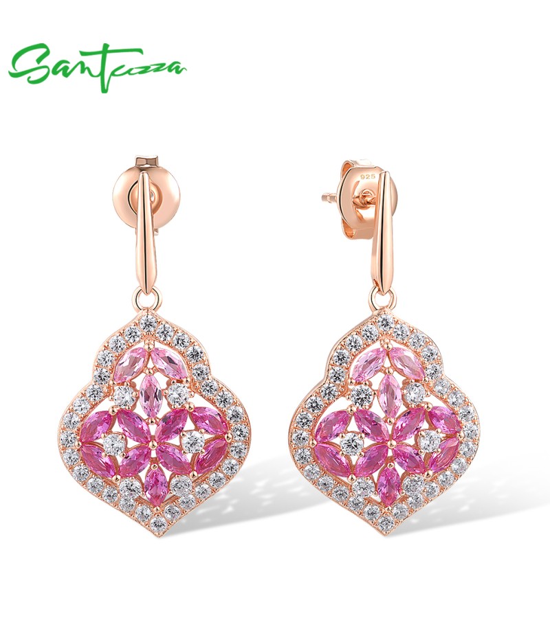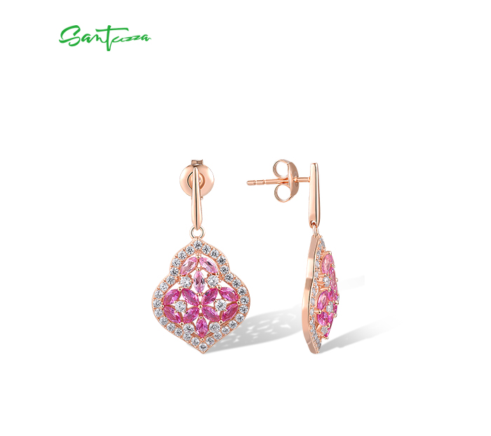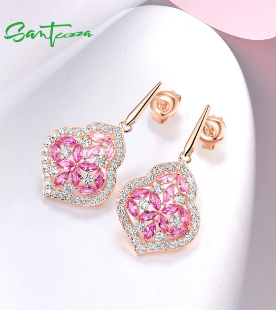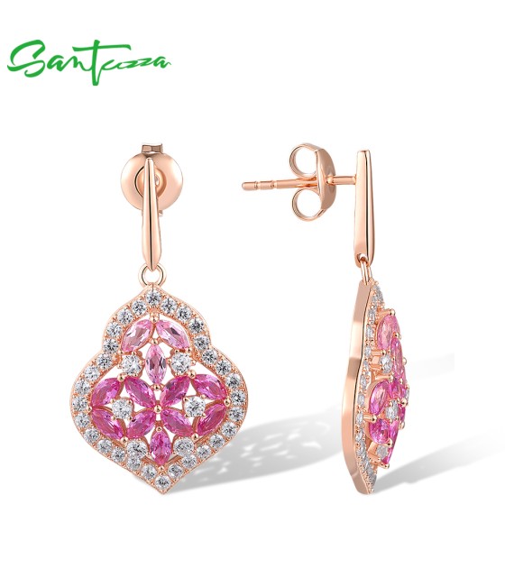SANTUZZA 925 Sterling Silver Drop Earrings White CZ Created Pink Sapphire Jewelry