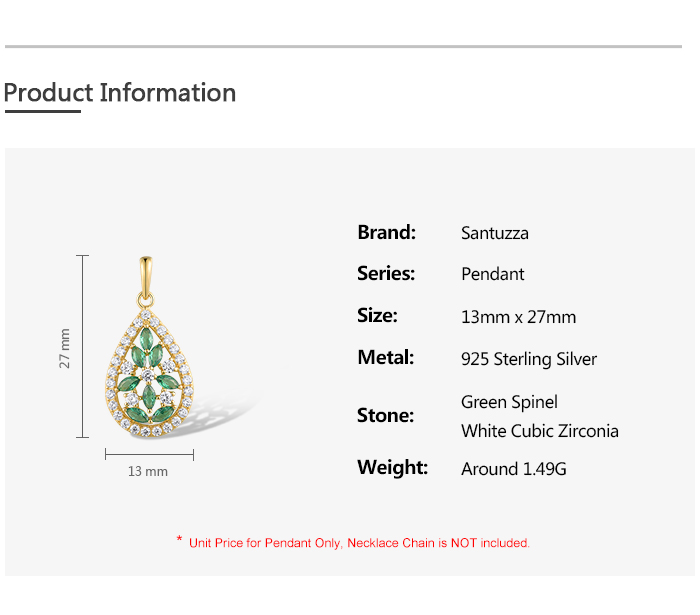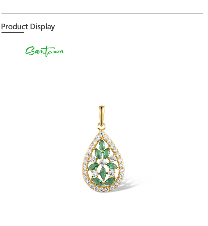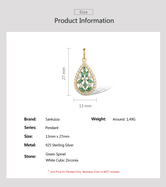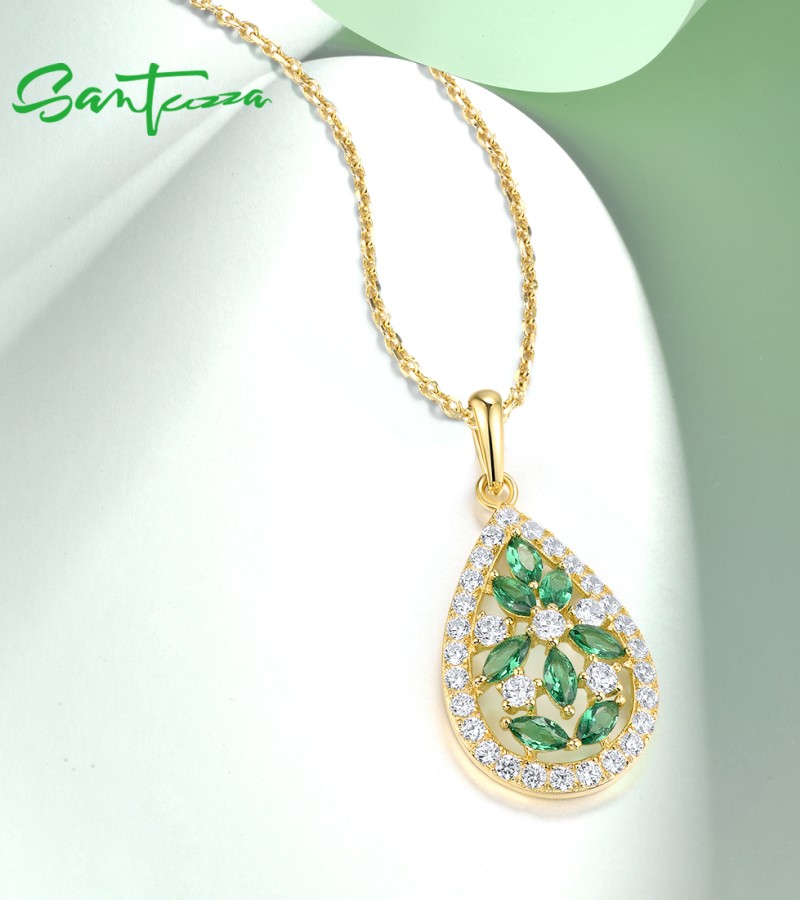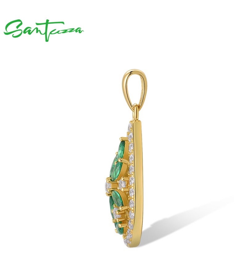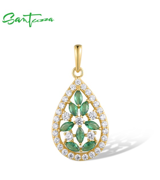 SANTUZZA 925 Sterling Silver Pendant Sparkling Green Spinel White CZ Jewelry