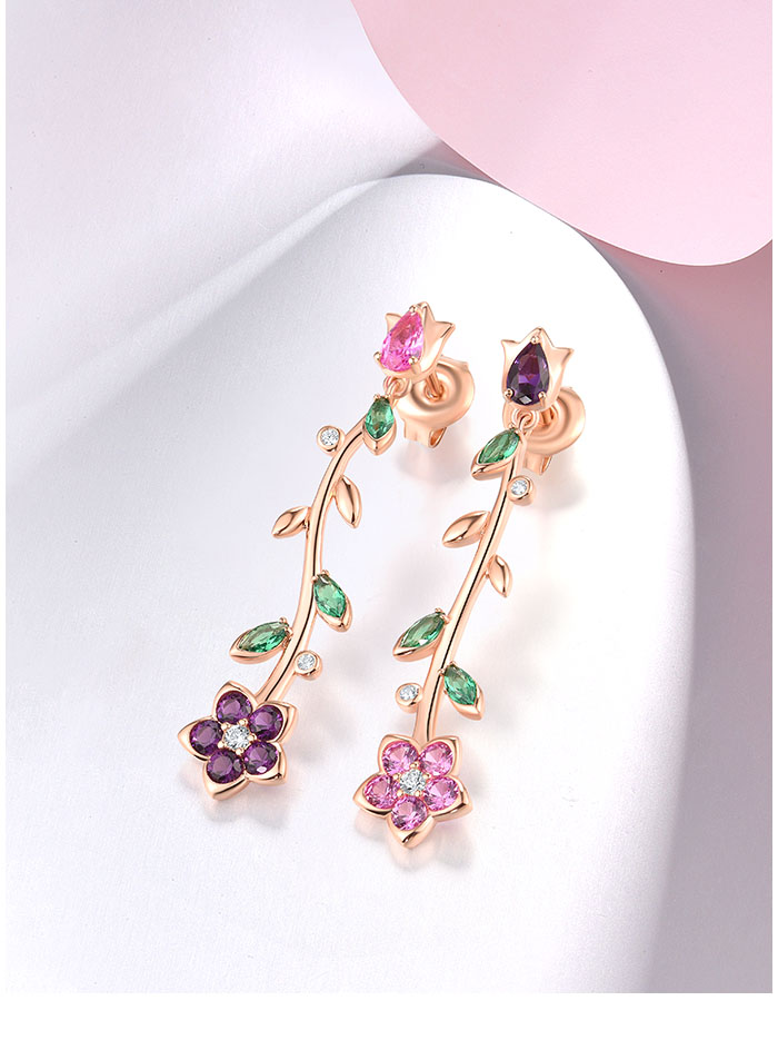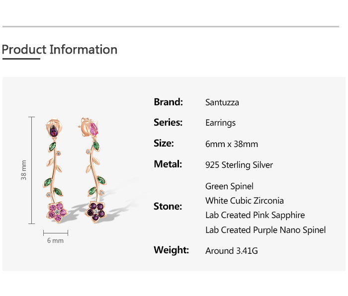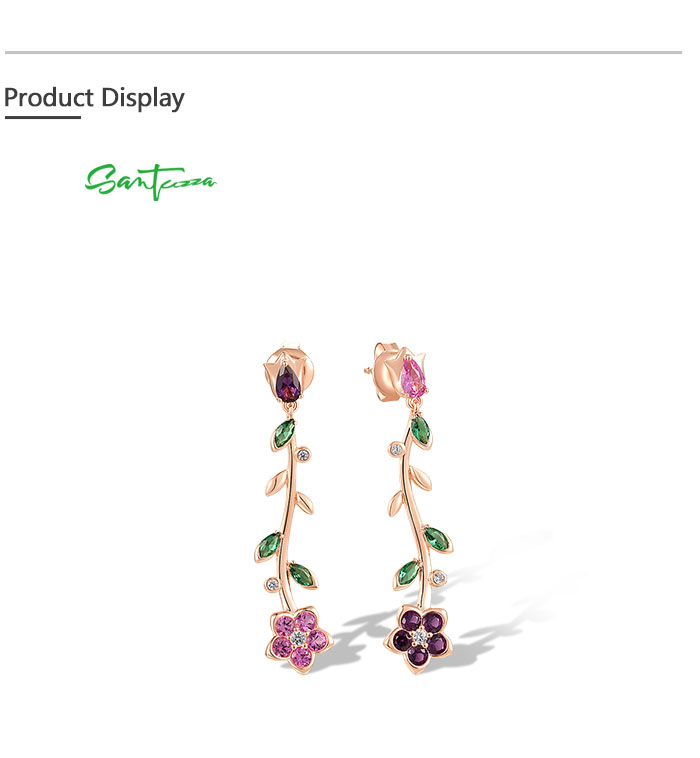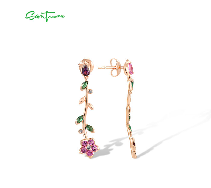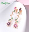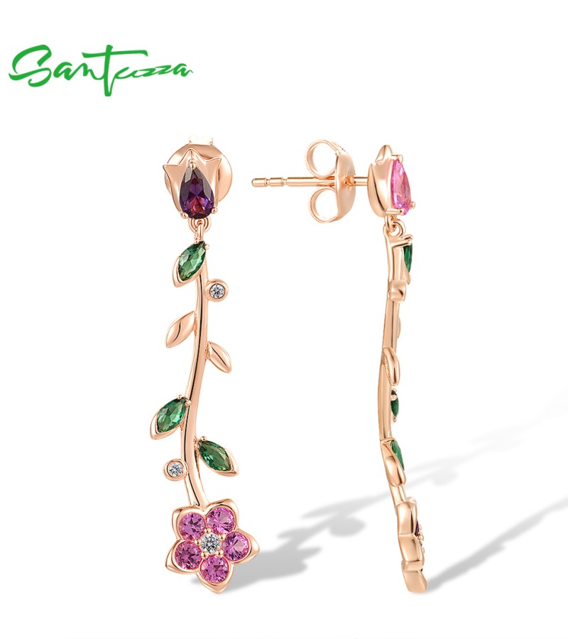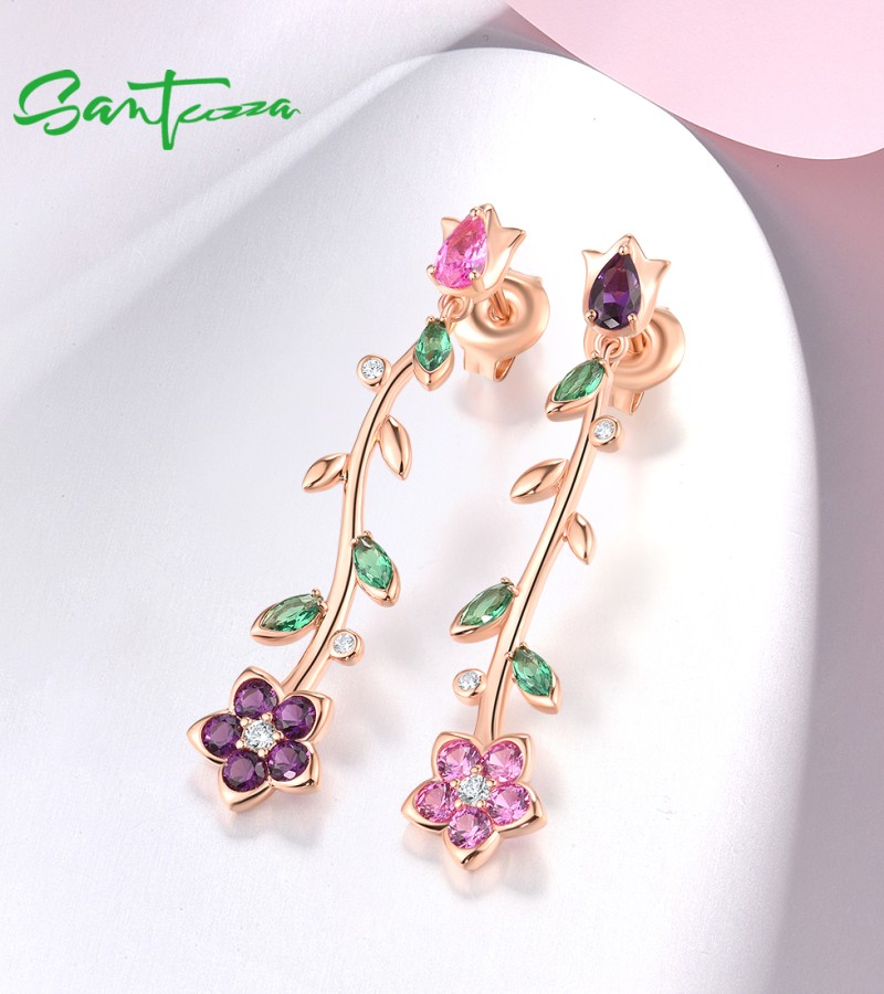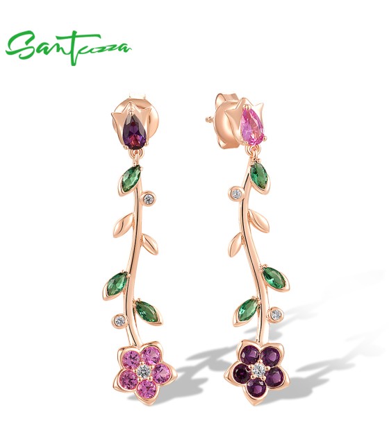 SANTUZZA 925 Sterling Silver Dangling Stud Earrings Colorful Gemstone Drop Flower Fine Jewelry