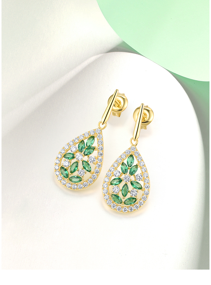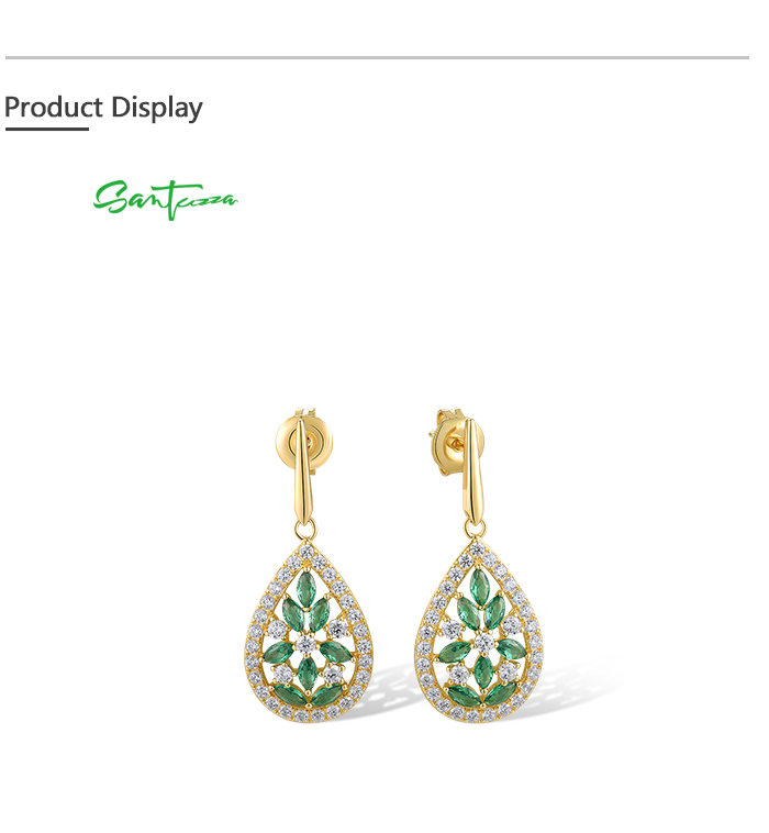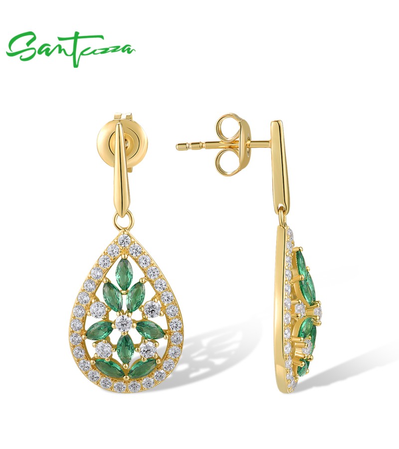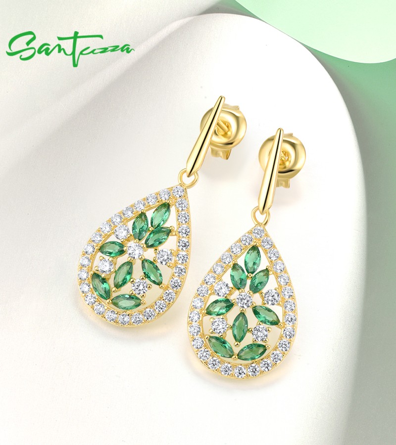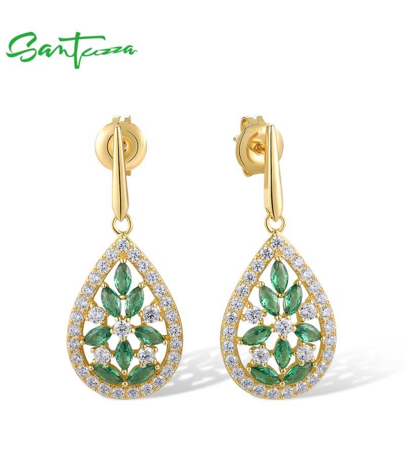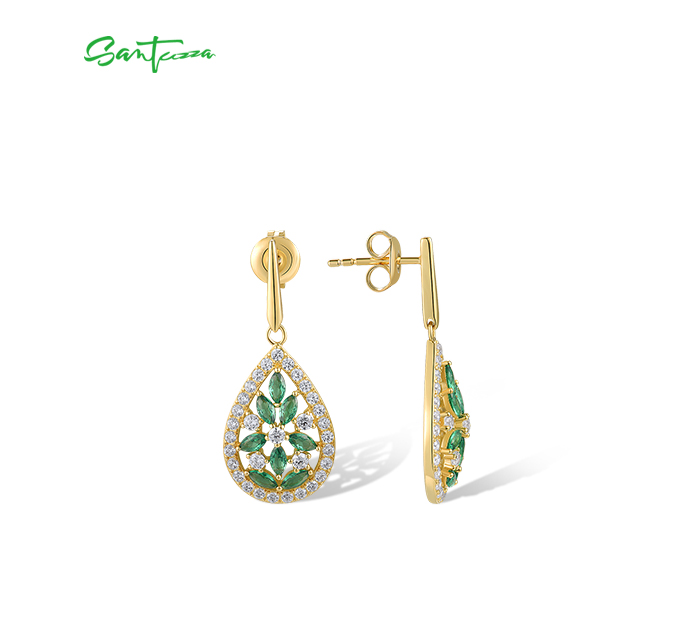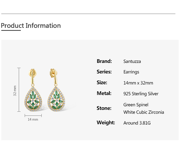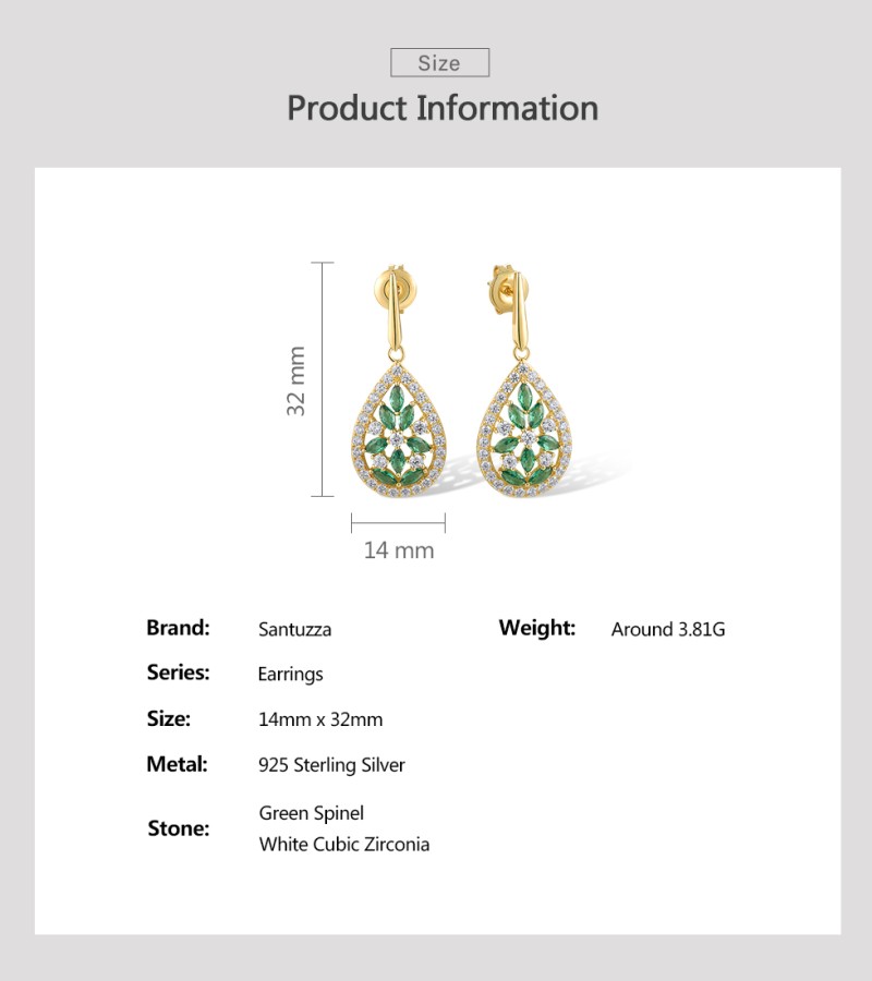 SANTUZZA 925 Sterling Silver Drop Earrings Green Spinel White CZ Jewelry
