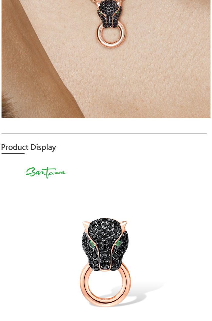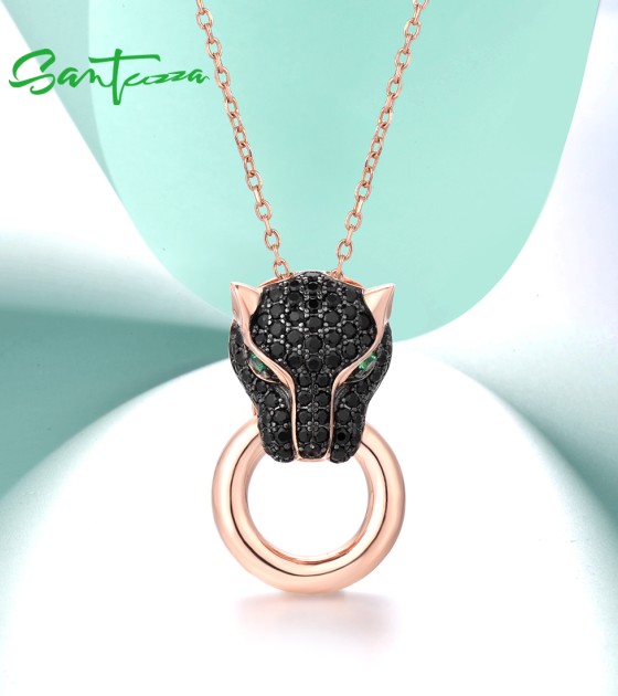 SANTUZZA 925 Sterling Silver Pendant For Women Black Green Spinel Panther leopard Animal Jewelry