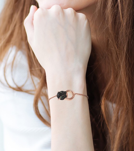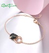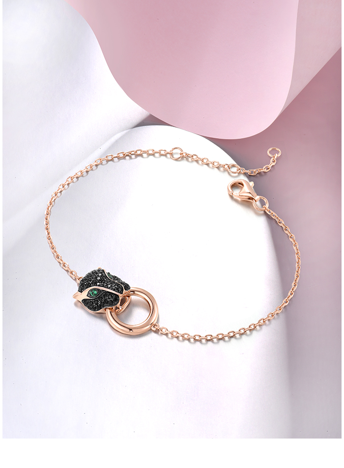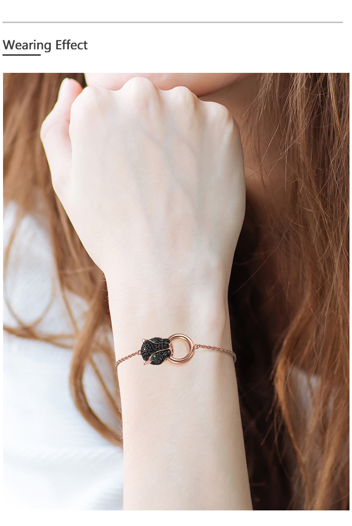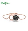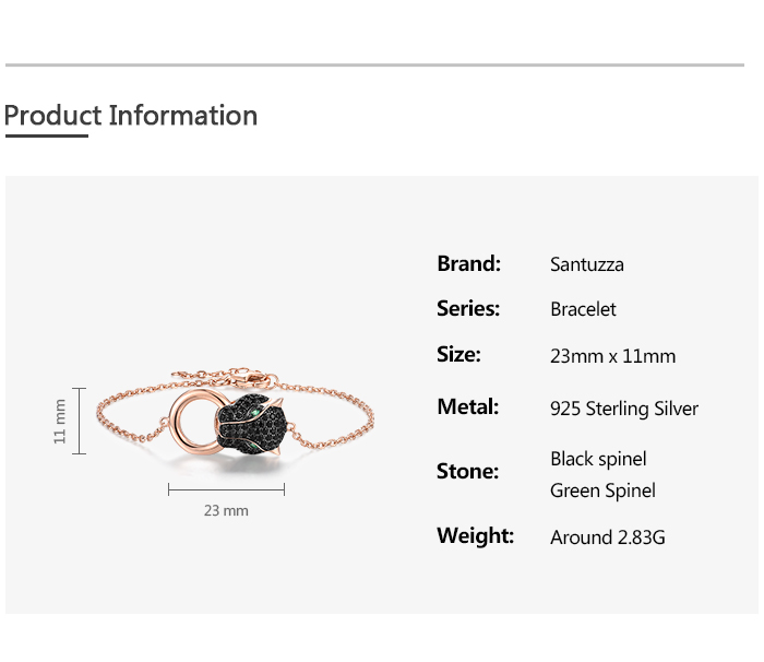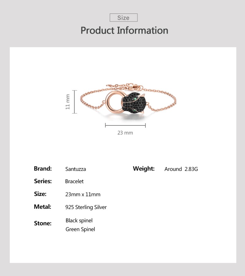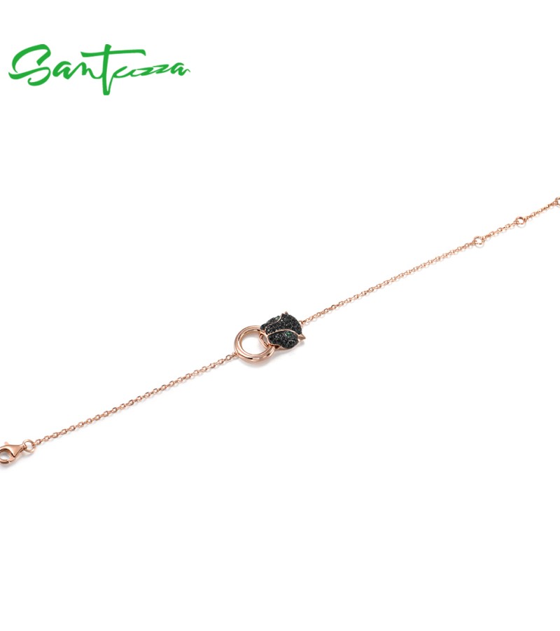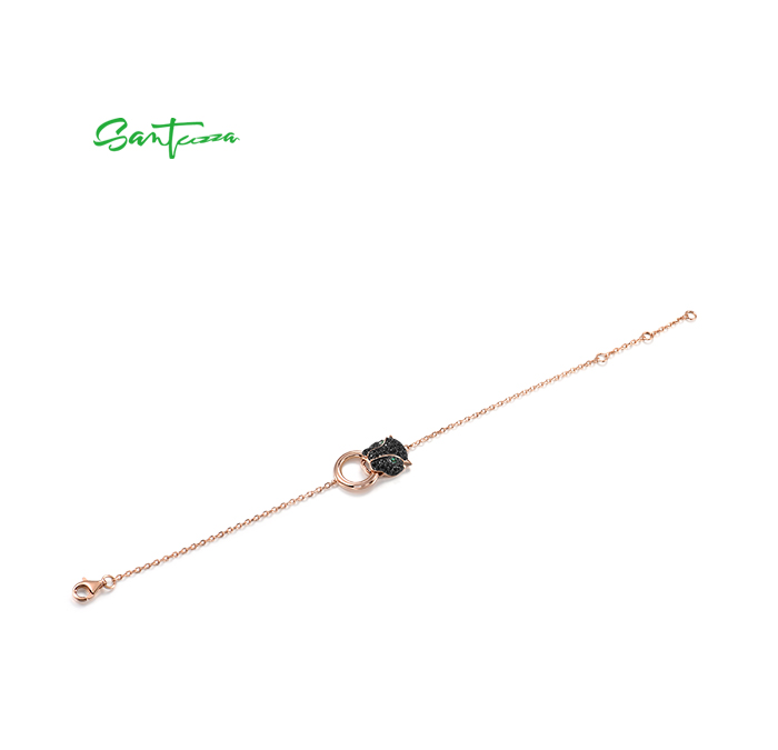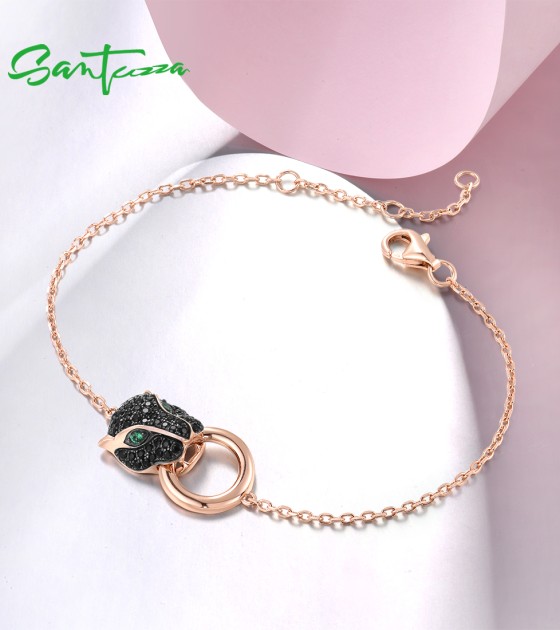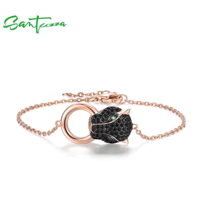 SANTUZZA 100% 925 Sterling Silver Bracelets For Women Black Spinel Leopard Head Panther Chain Link Gold Color Animal Fine Jewelry