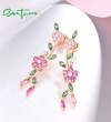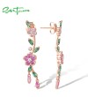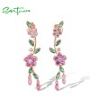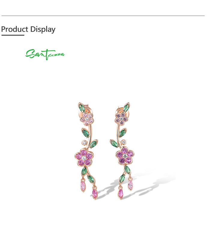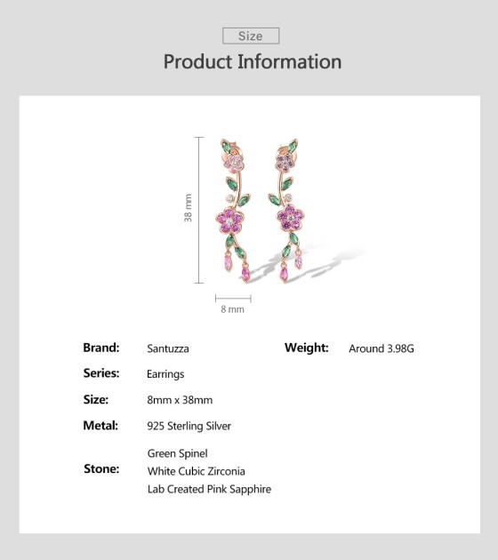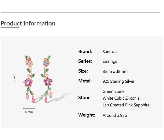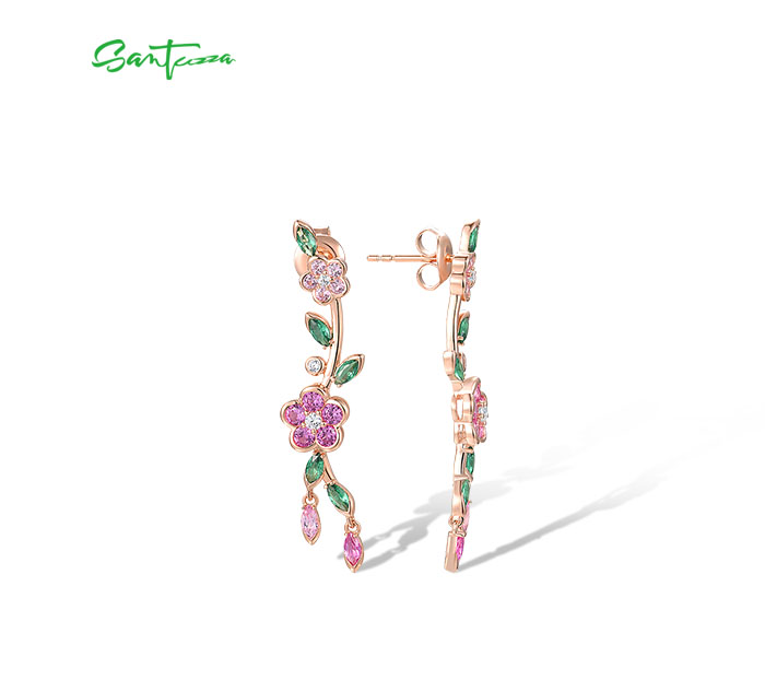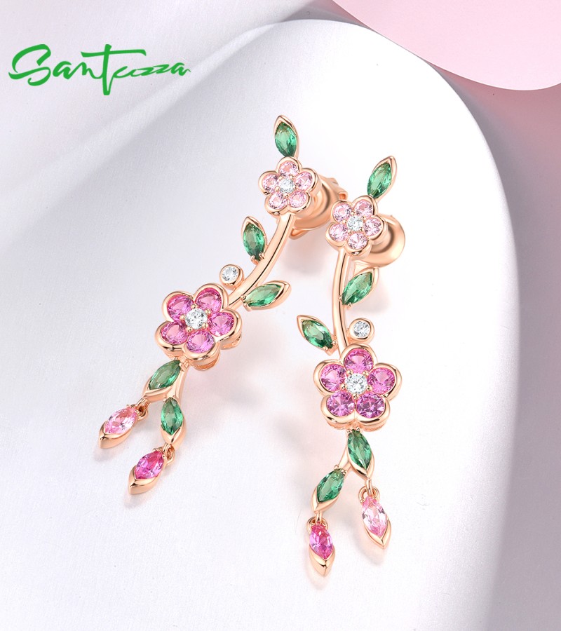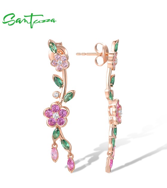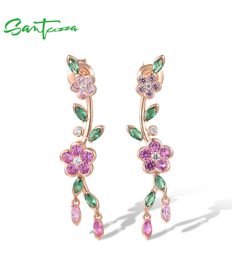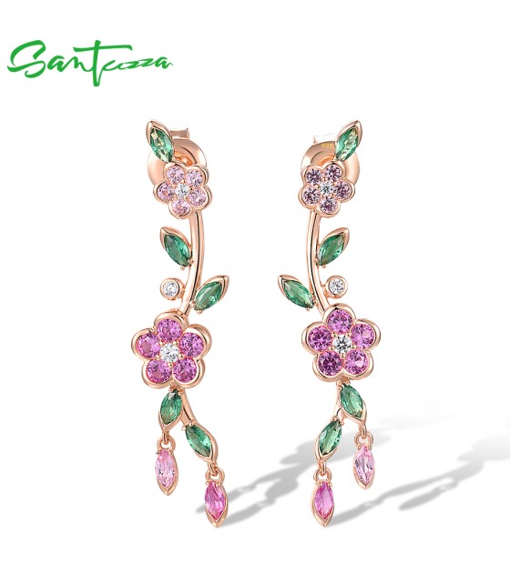 SANTUZZA 925 Sterling Silver Earrings Created Pink Sapphire Green Spinel Fine Jewelry