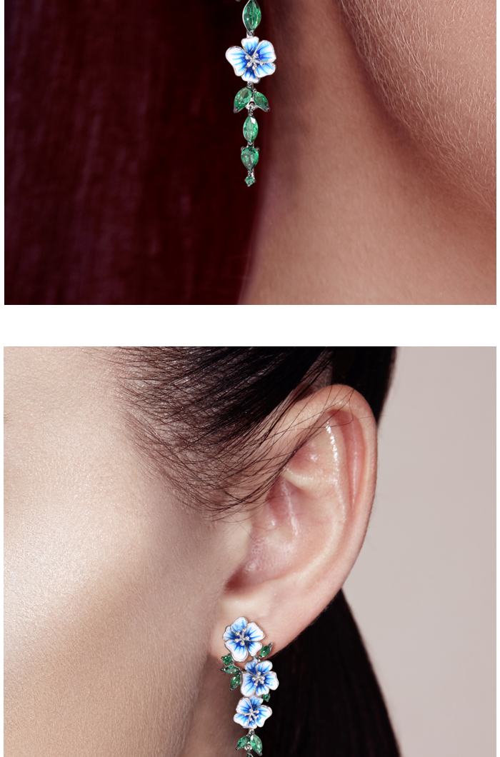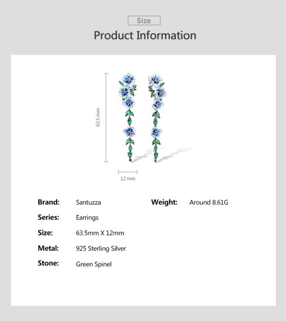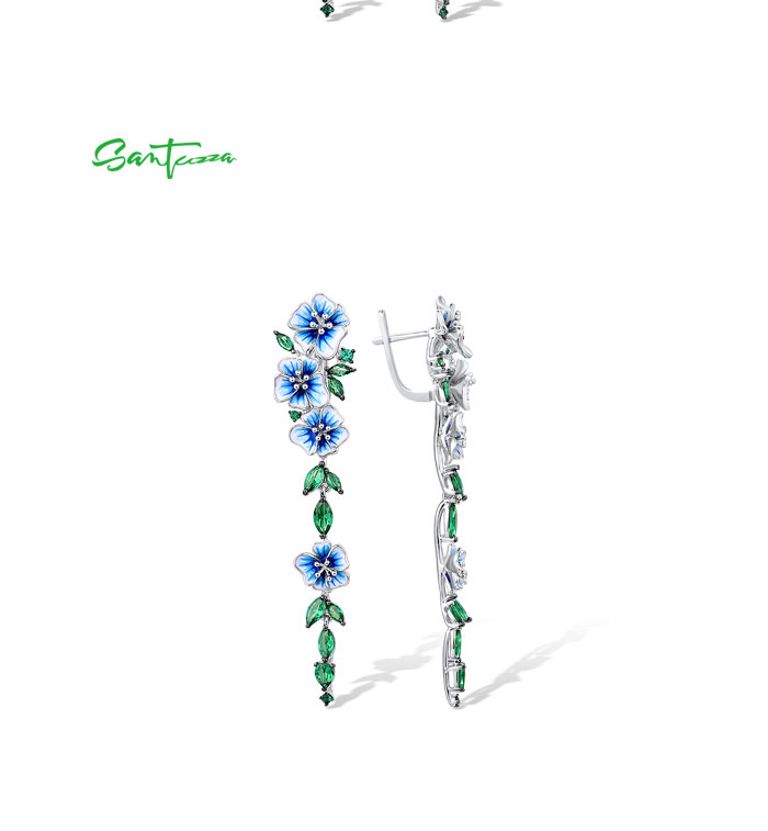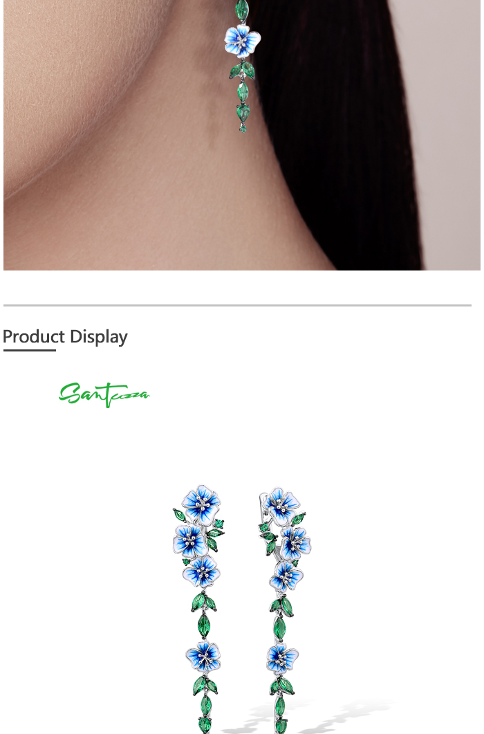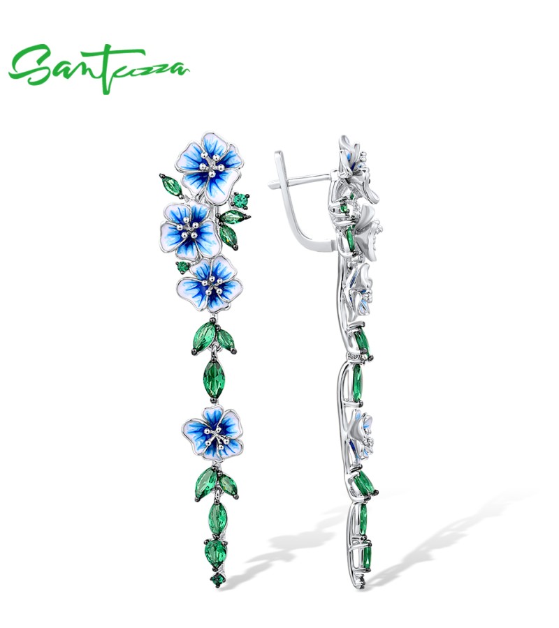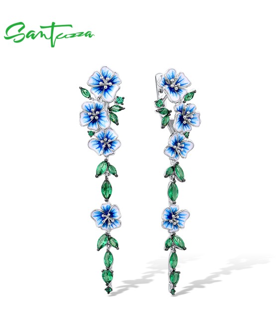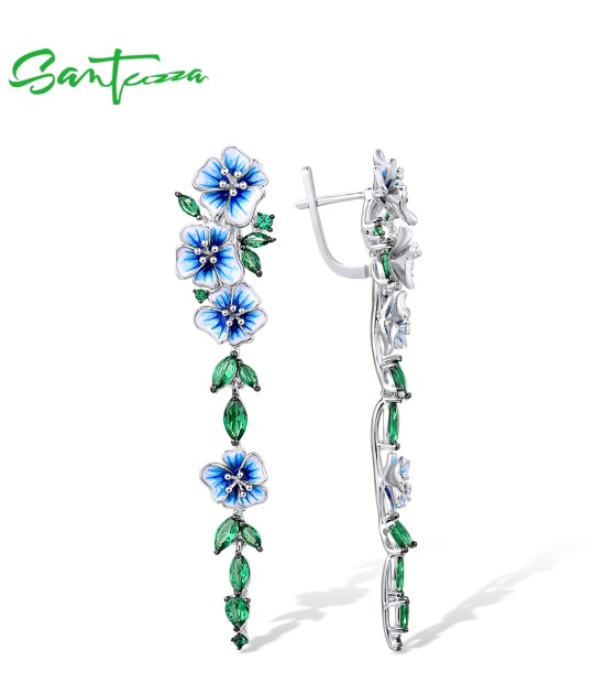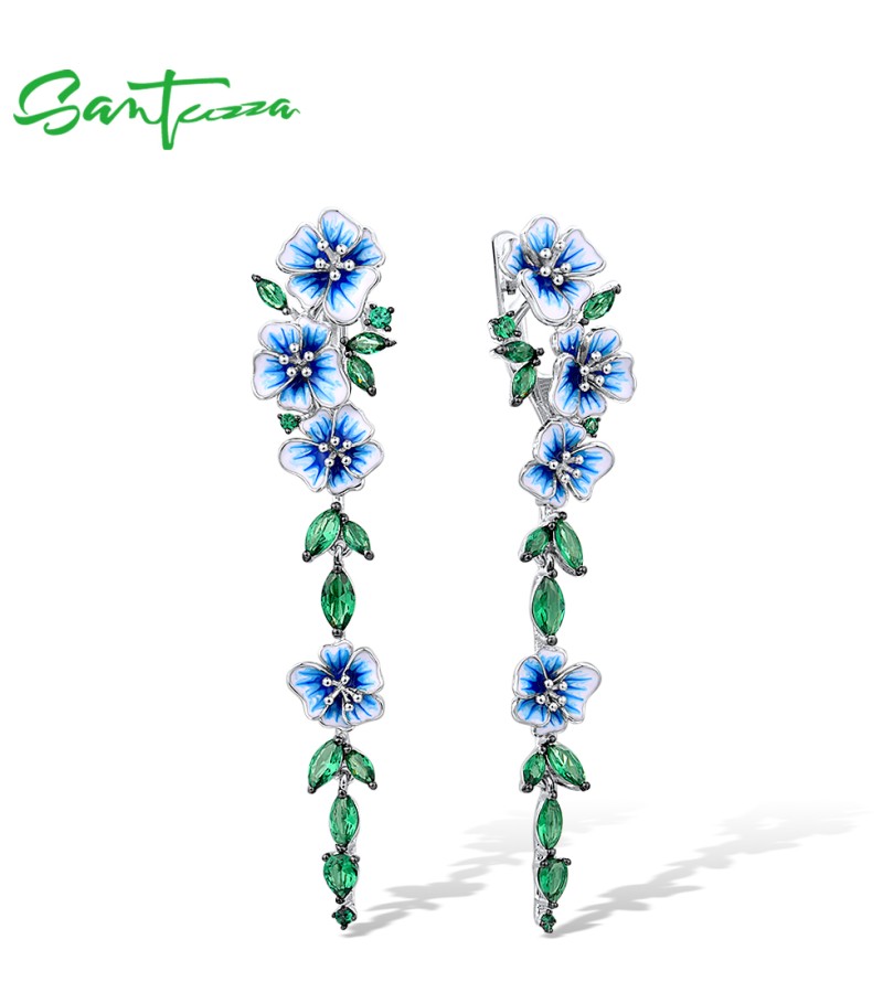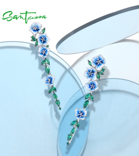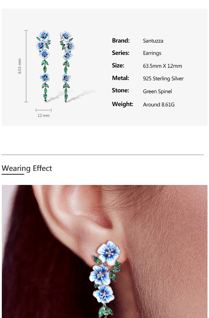 SANTUZZA 925 Sterling Silver Earrings For Blue Flowers Dangling Jewelry Enamel