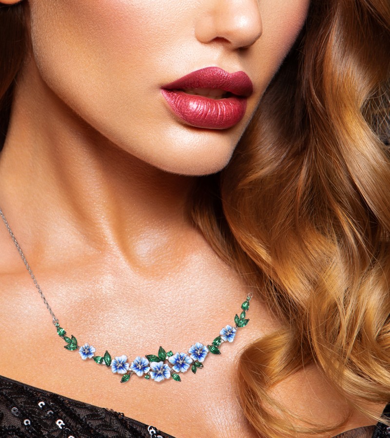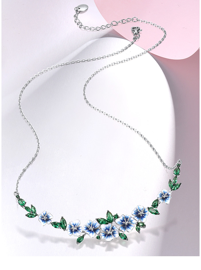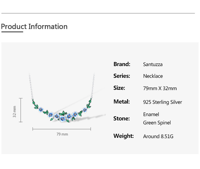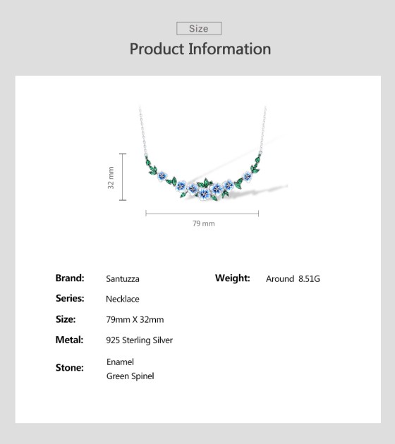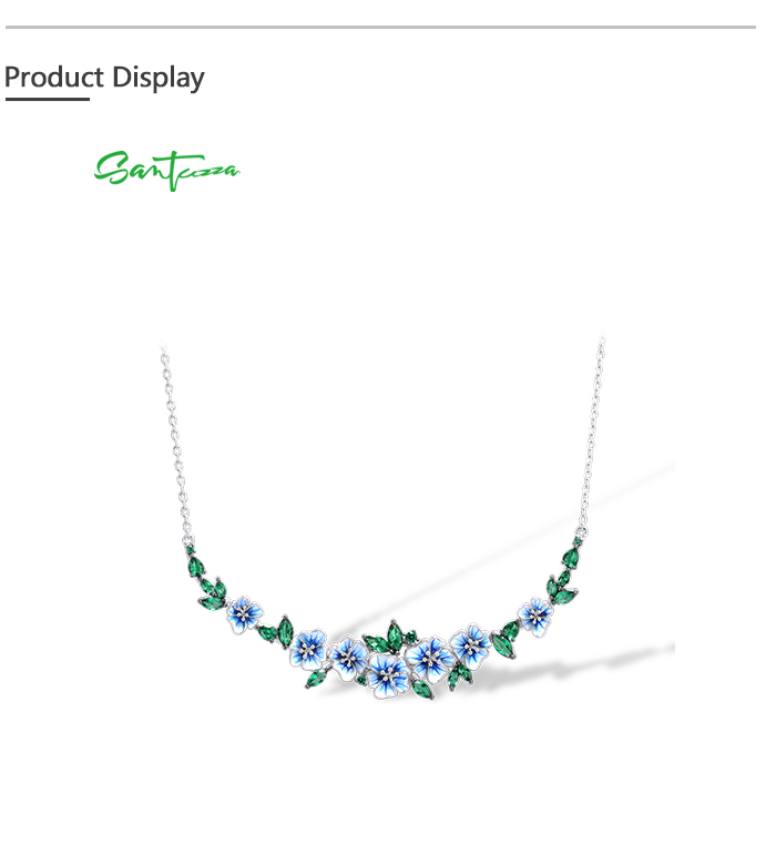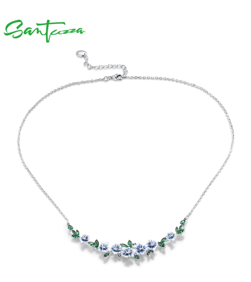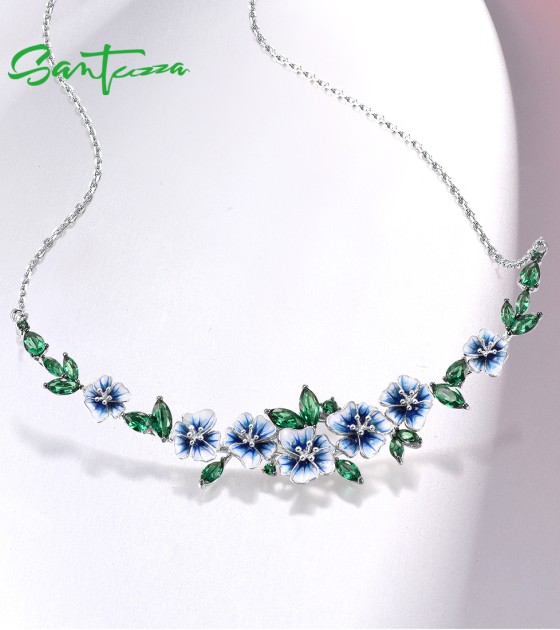 SANTUZZA 925 Sterling Silver Necklace Green Spinel Blooming Flowers Jewelry Enamel