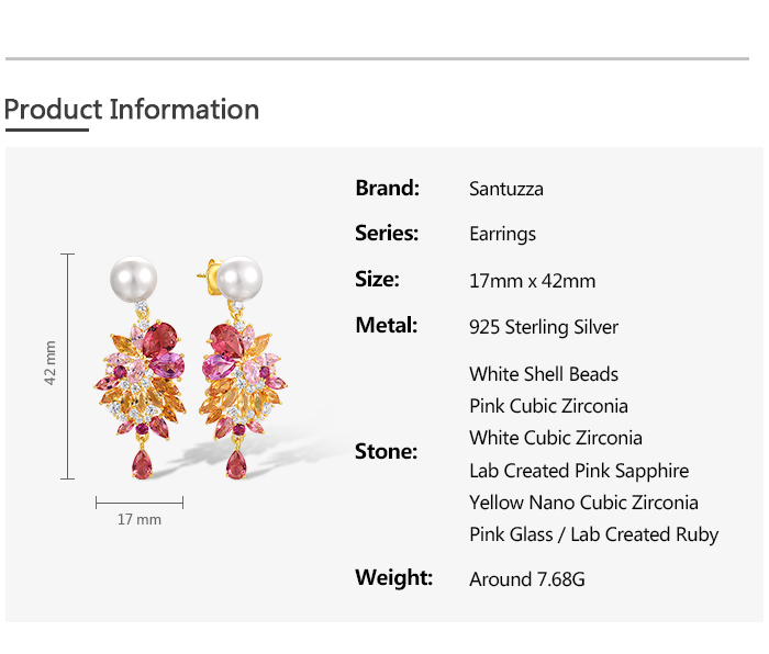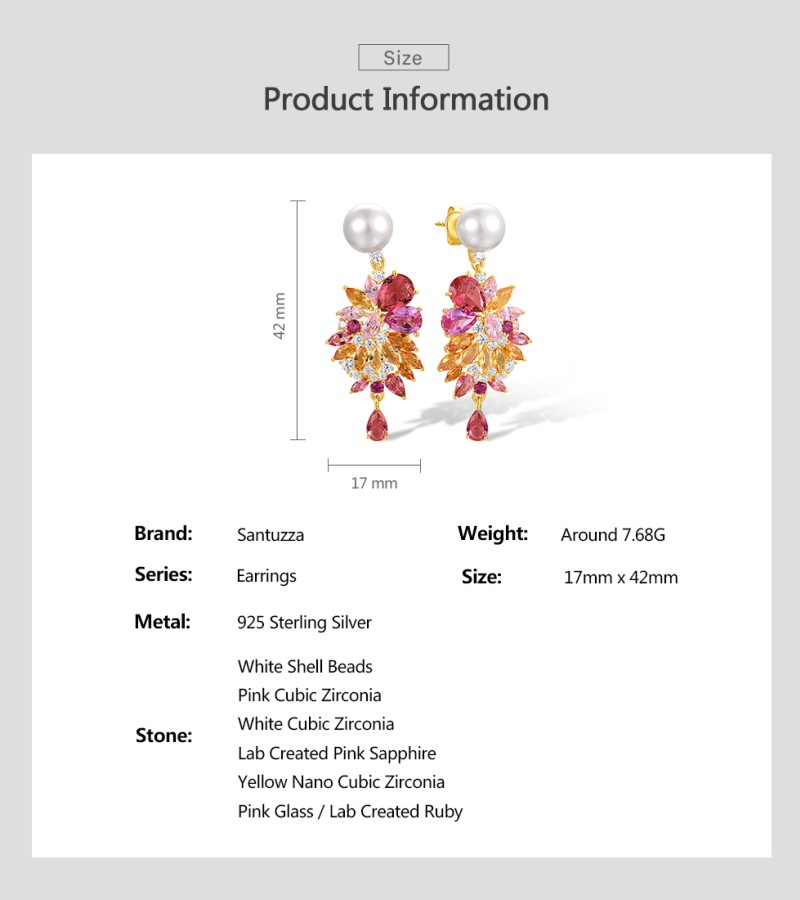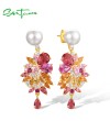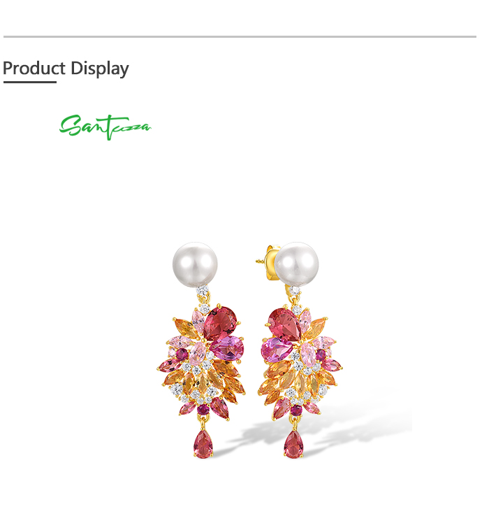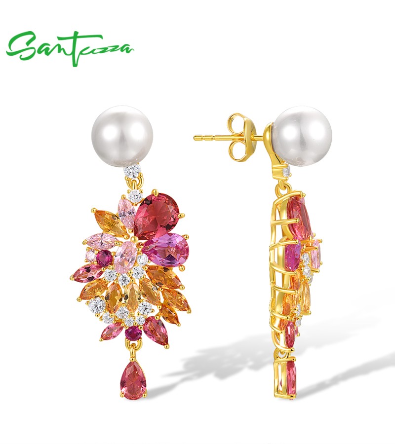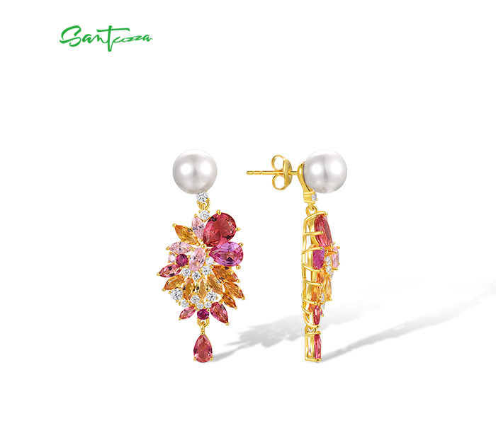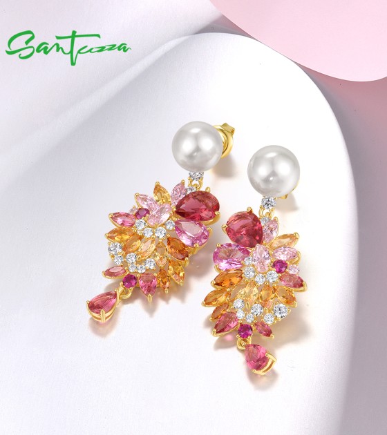 SANTUZZA 925 Sterling Silver Drop Earrings Multi-Color Gemstone Fine Jewelry