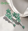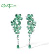 SANTUZZA 925 Sterling Silver Drop Earrings Flowers Green Spinel White Cubic Zirconia Jewelry