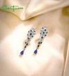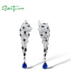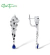 SANTUZZA 925 Sterling Silver Dangling Earrings For Women Leopard Blue Cubic Zirconia Animal Jewelry