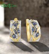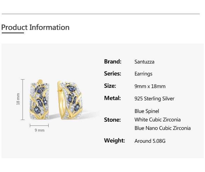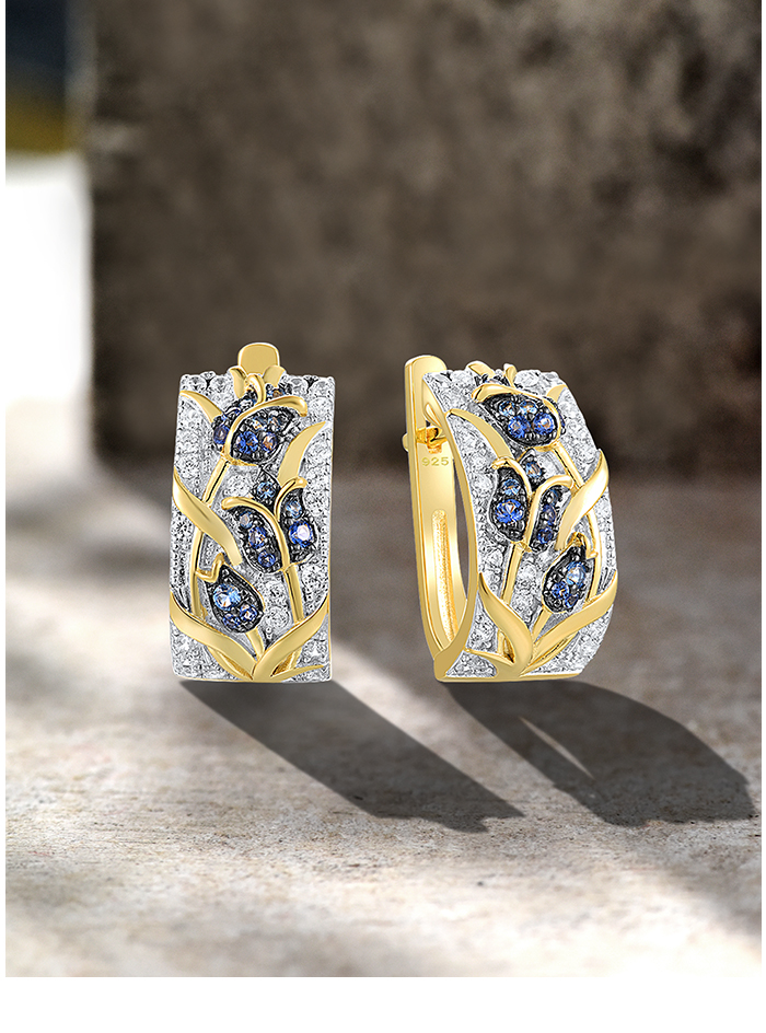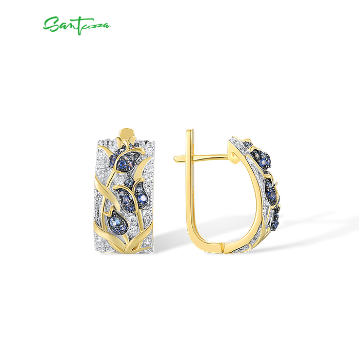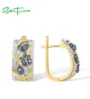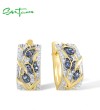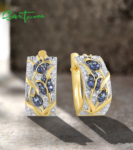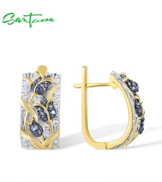 SANTUZZA 925 Sterling Silver Earrings White Cubic Zirconia Blue Tulip Gold Plated Jewelry