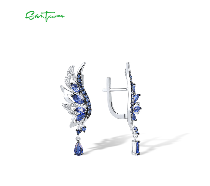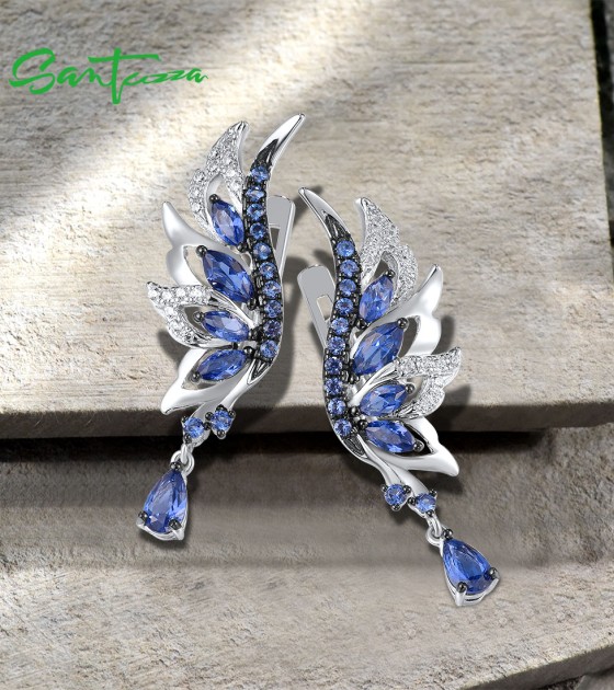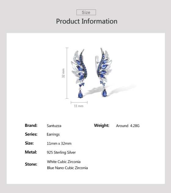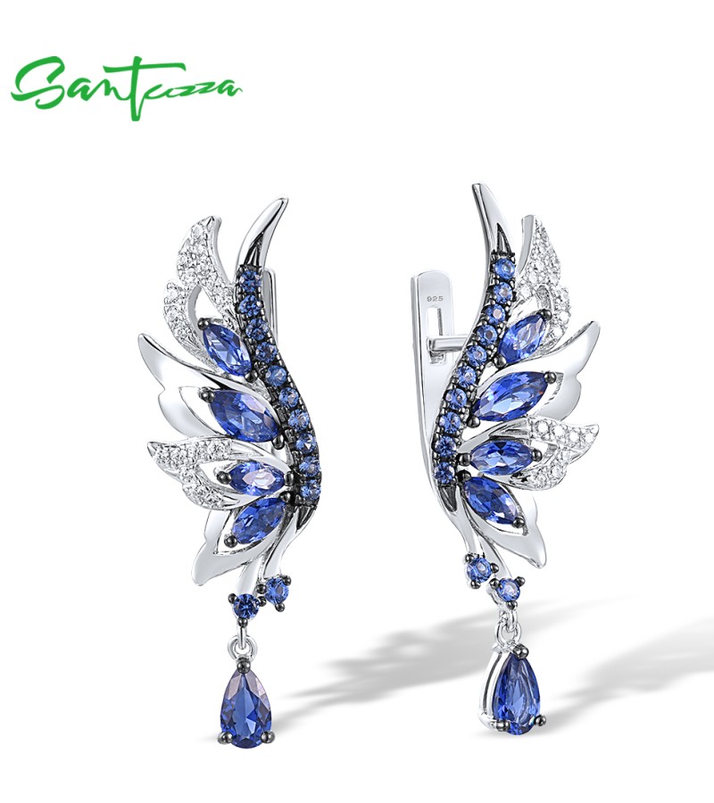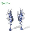 SANTUZZA 925 Sterling Silver Earrings Sparkling Blue White CZ Angel Wings Jewelry