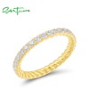 SANTUZZA 925 Sterling Silver Rings White Cubic Zirconia Stackable Ring Fine Jewelry-8
