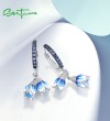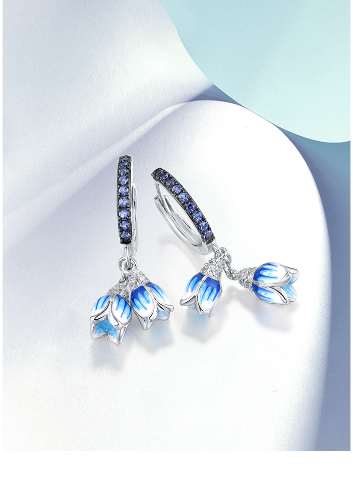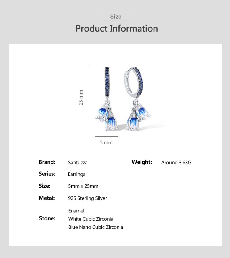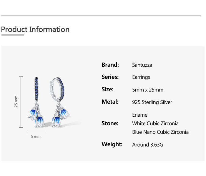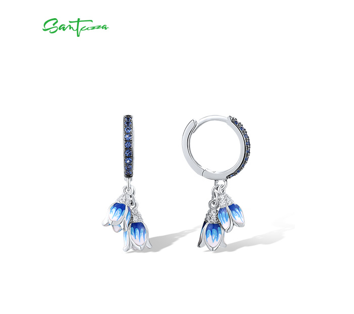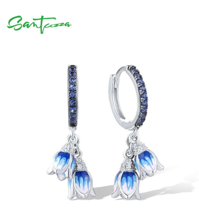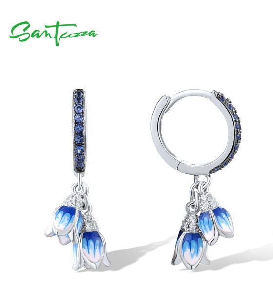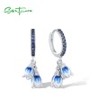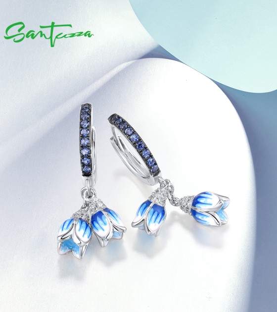 SANTUZZA 925 Sterling Silver Drop Earrings Sparkling White Blue CZ Enamel Tulip Flower Jewelry