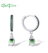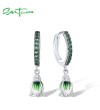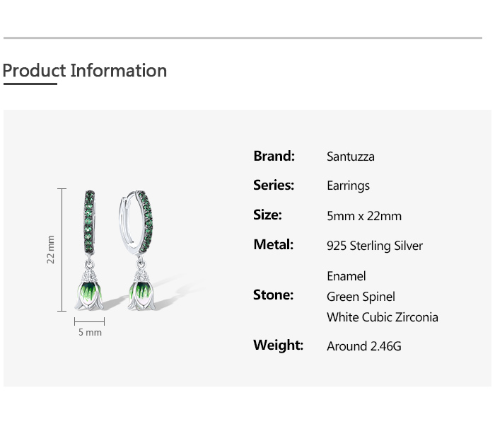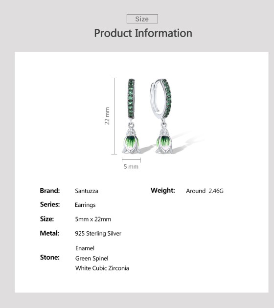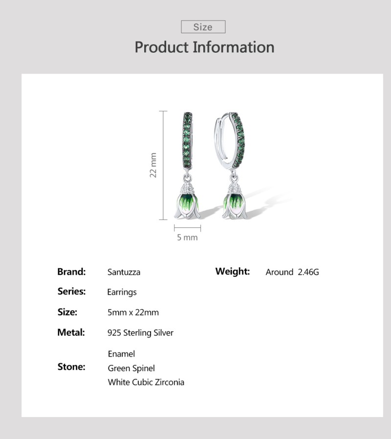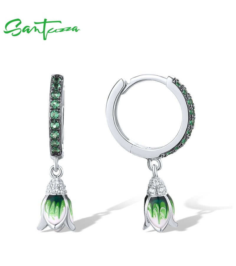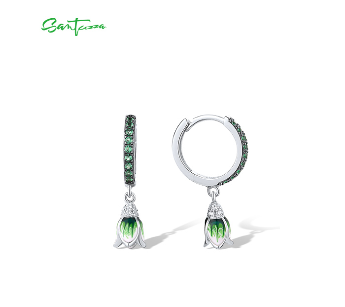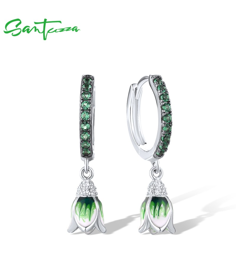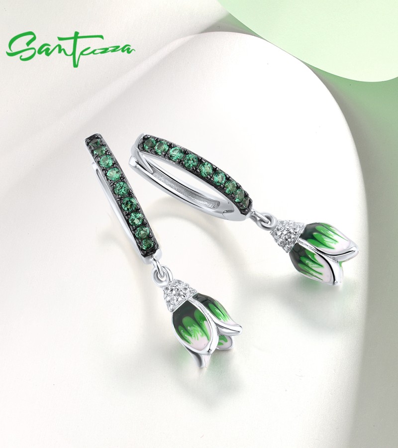 SANTUZZA 925 Sterling Silver Drop Earrings Green Spinel Tulip Flower Enamel Jewelry