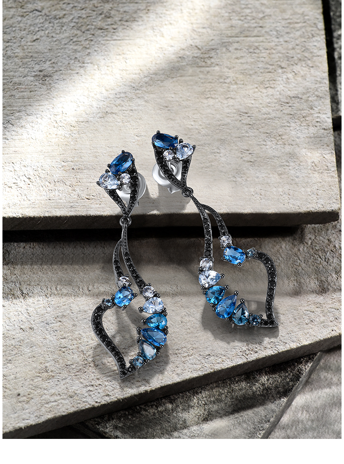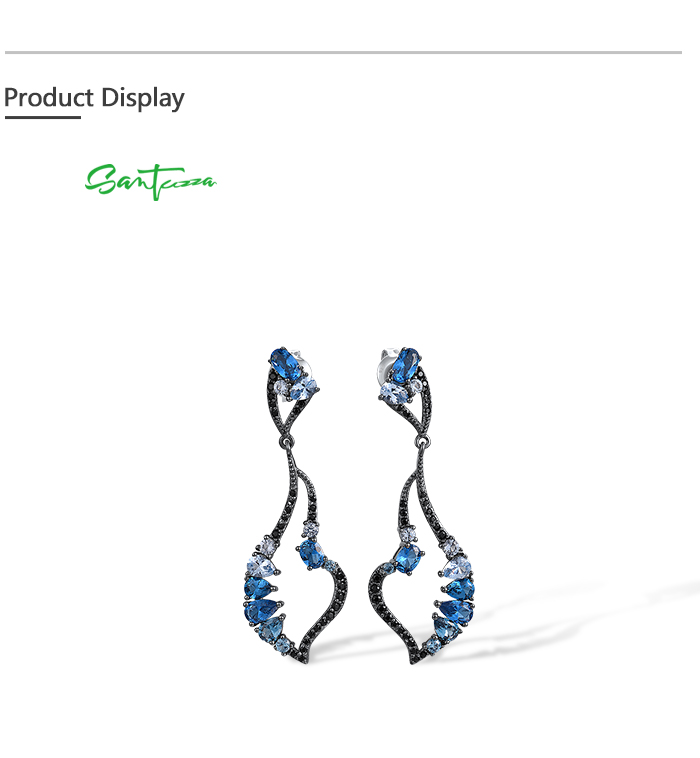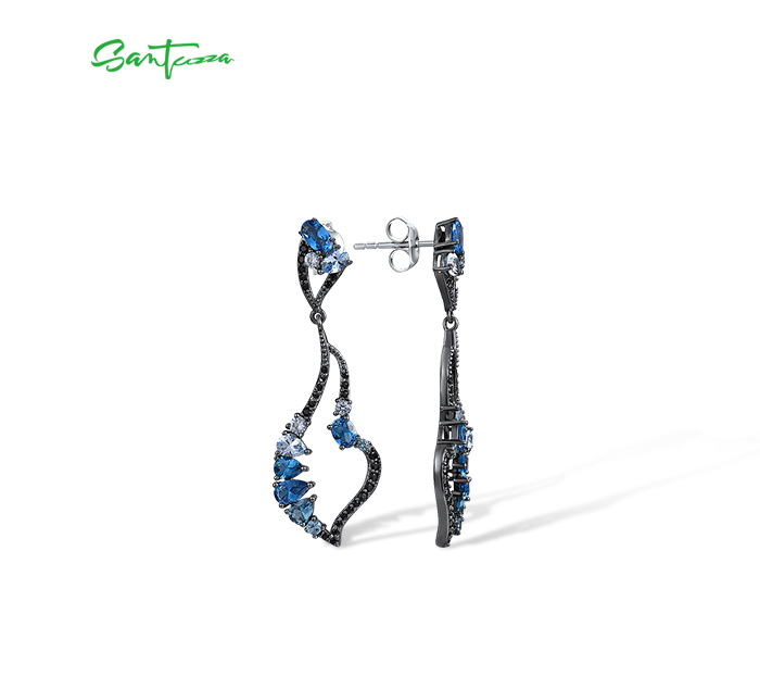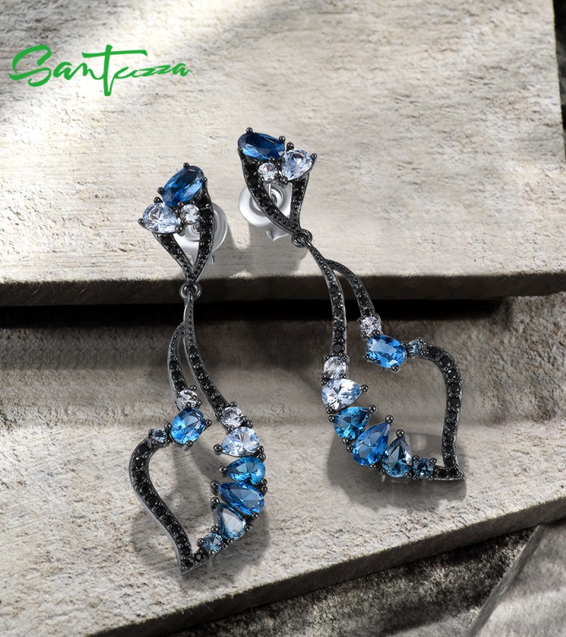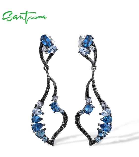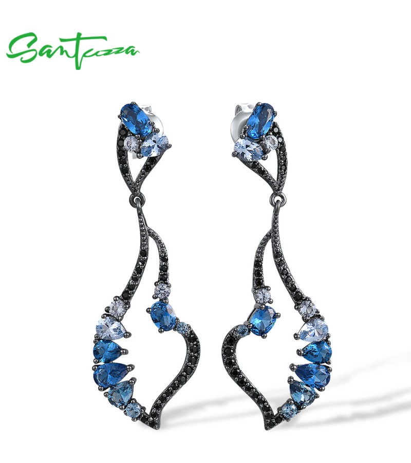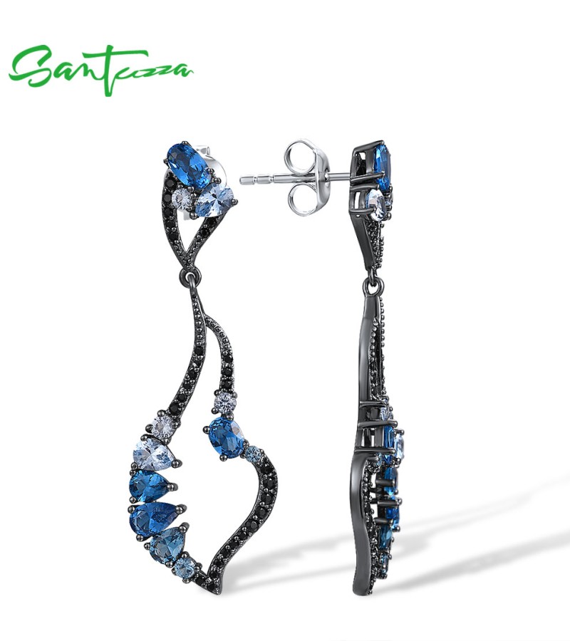 SANTUZZA 925 Sterling Silver Earrings Blue Black Spinel Dangling Earrings Geometric Jewelry