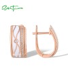 SANTUZZA 925 Sterling Silver Earrings White CZ Handmade Enamel Fine Jewelry