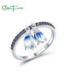 SANTUZZA 925 Sterling Silver Rings Blue Sone Danling Tulip Flower Fine Jewelry Enamel