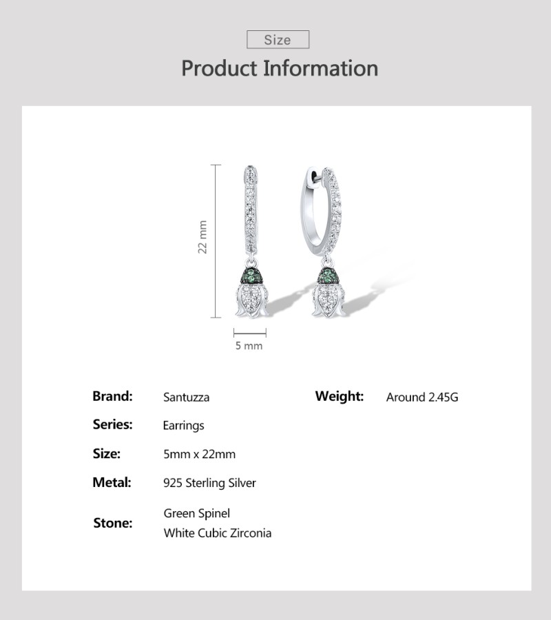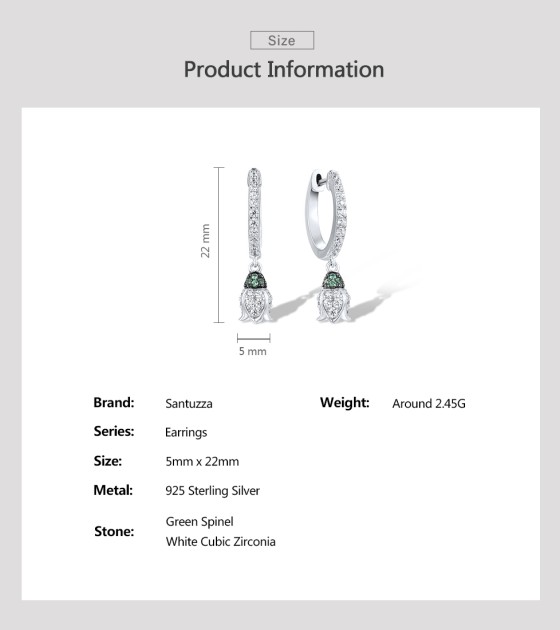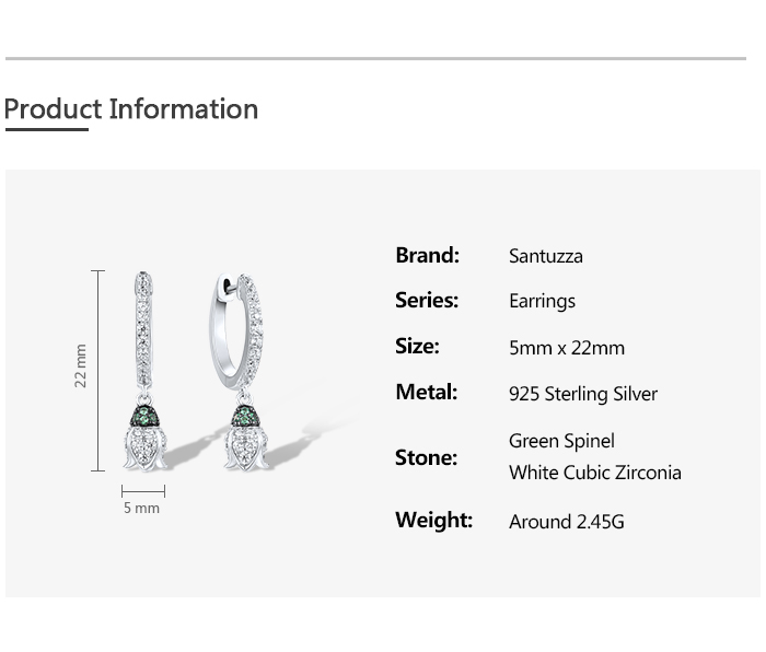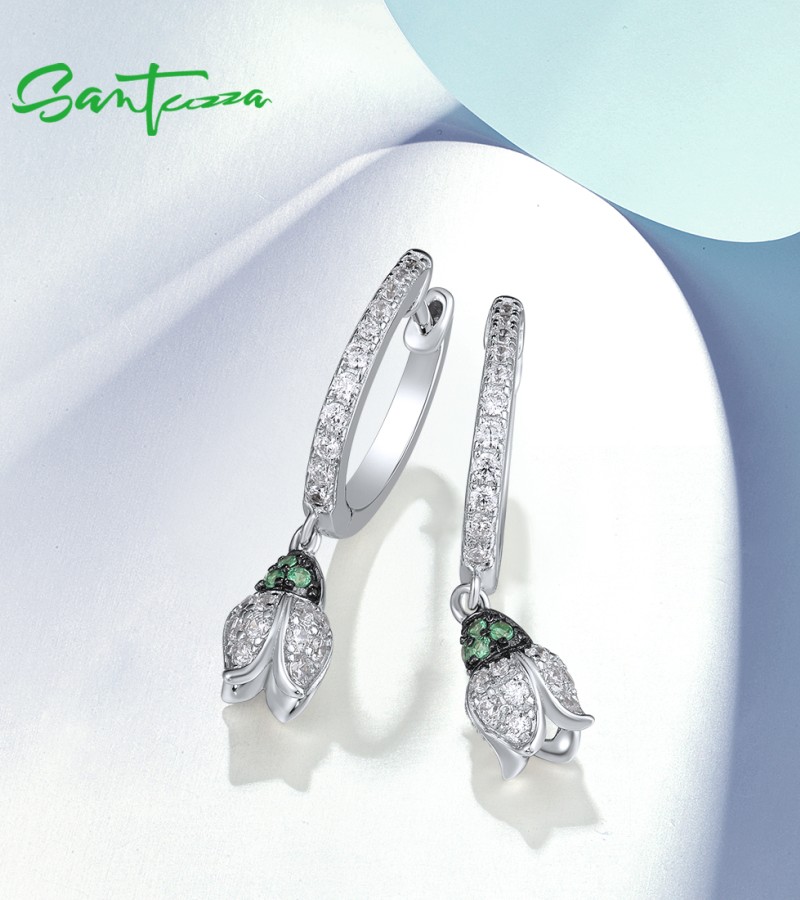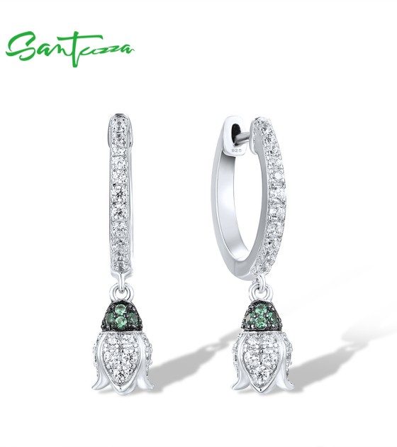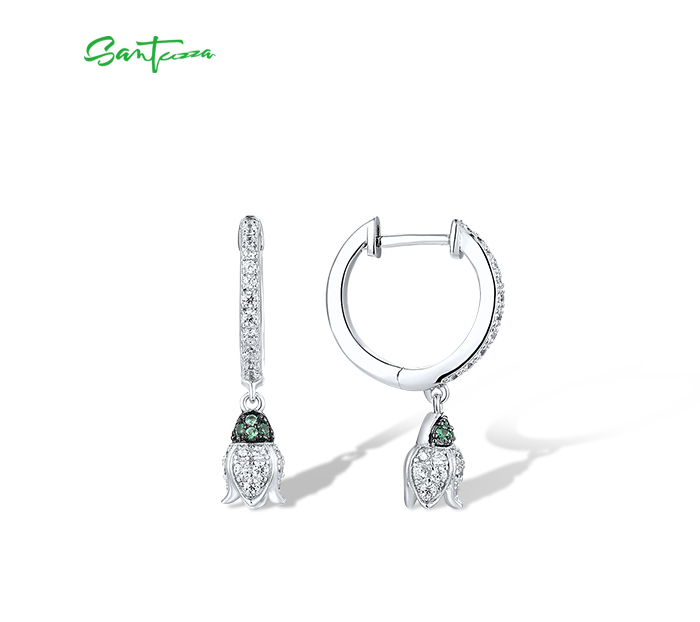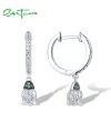 SANTUZZA 925 Sterling Silver Loop Earrings White CZ Green Spinel Flower Pierce Fine Jewelry