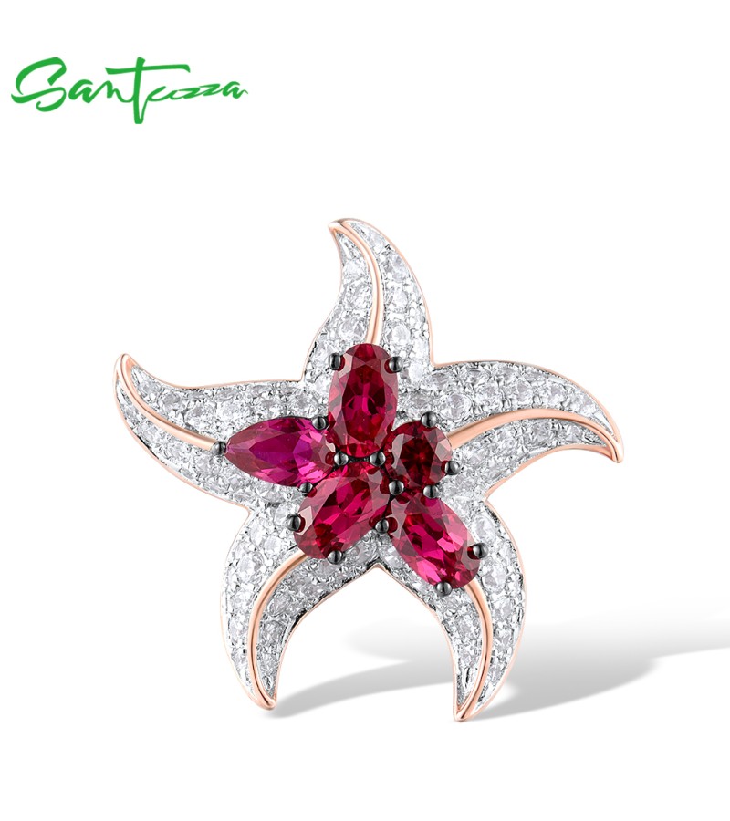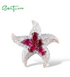SANTUZZA 925 Sterling Silver Rings White CZ Created Ruby Star Fish Ocean Fine Jewelry - US 6