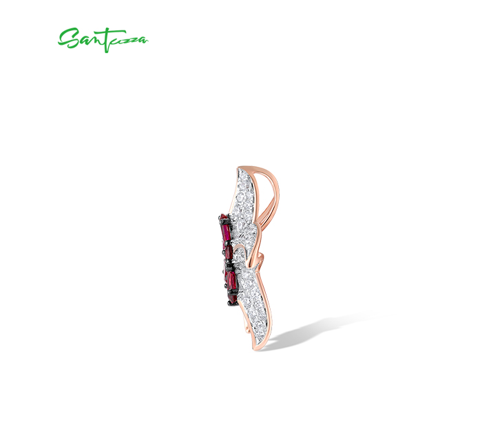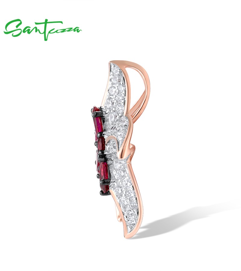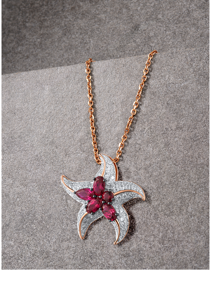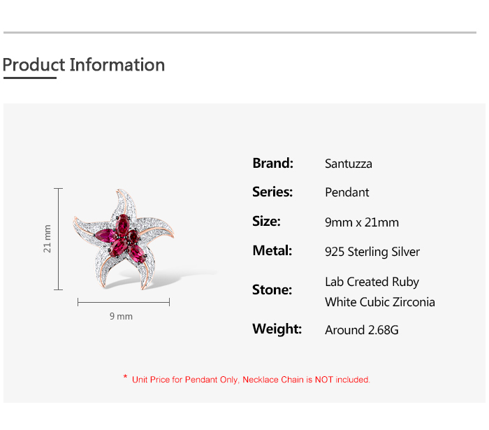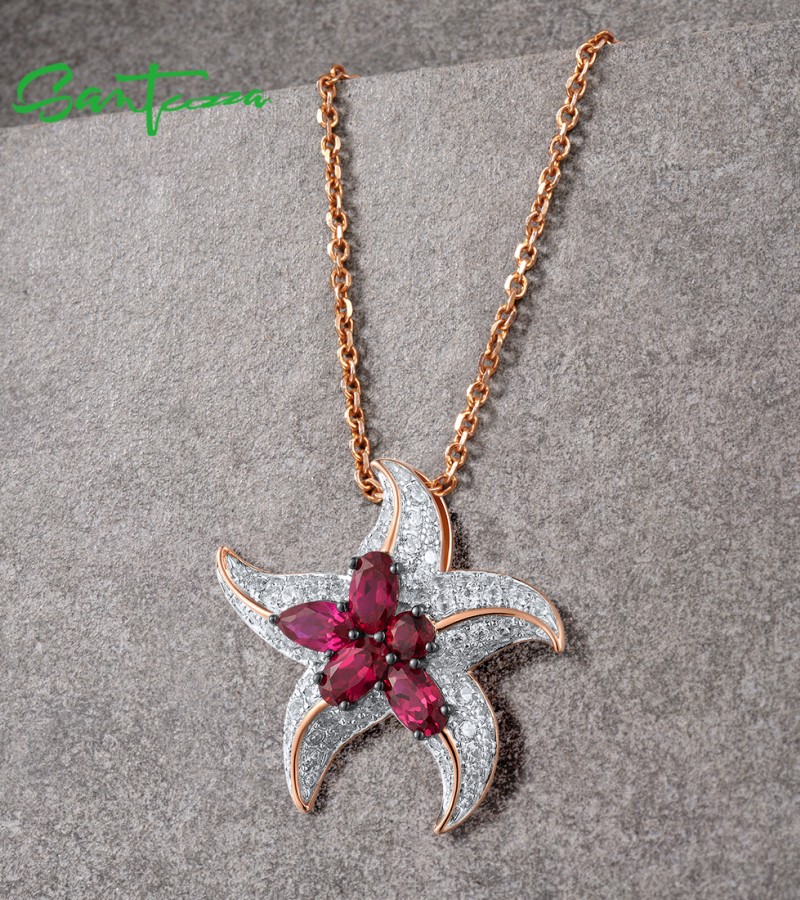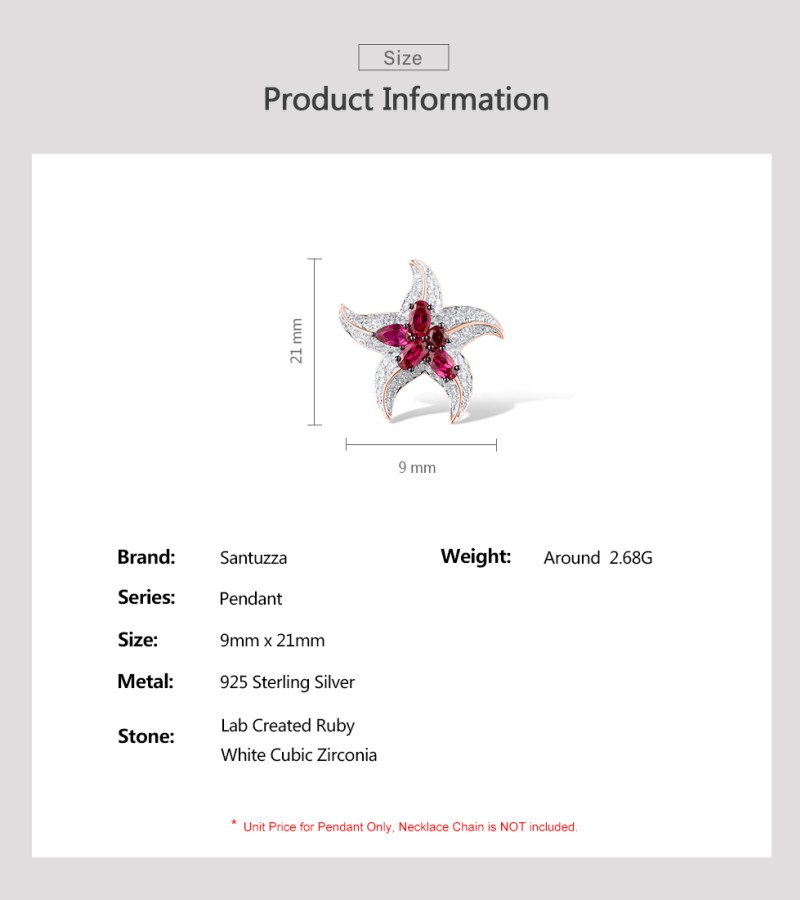 SANTUZZA 925 Sterling Silver Pendant White CZ Created Ruby Star Fish Ocean Fine Jewelry