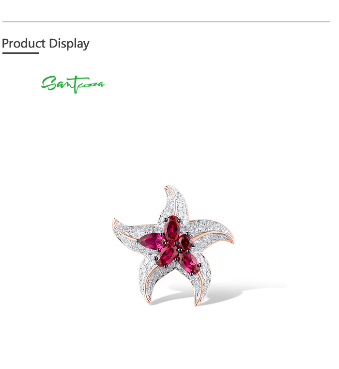 SANTUZZA 925 Sterling Silver Rings White CZ Created Ruby Star Fish Ocean Fine Jewelry - US 7