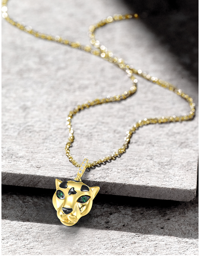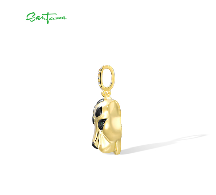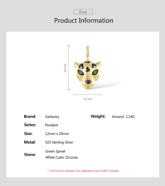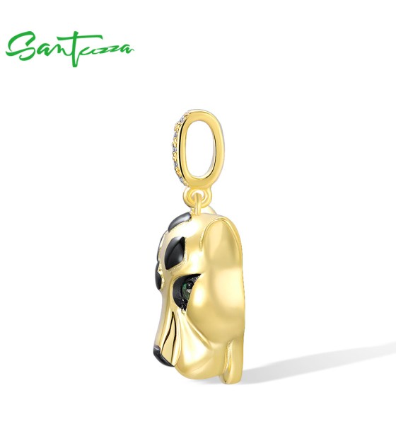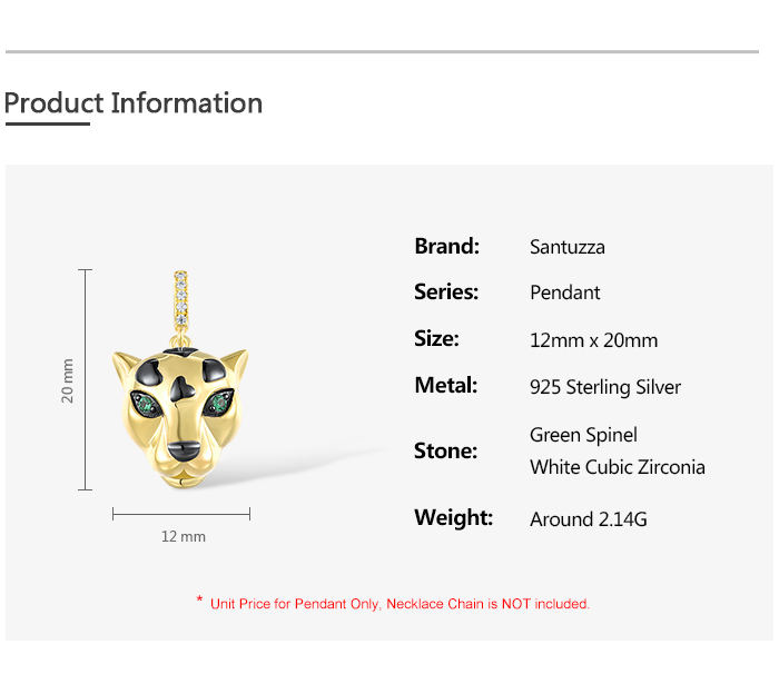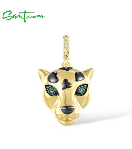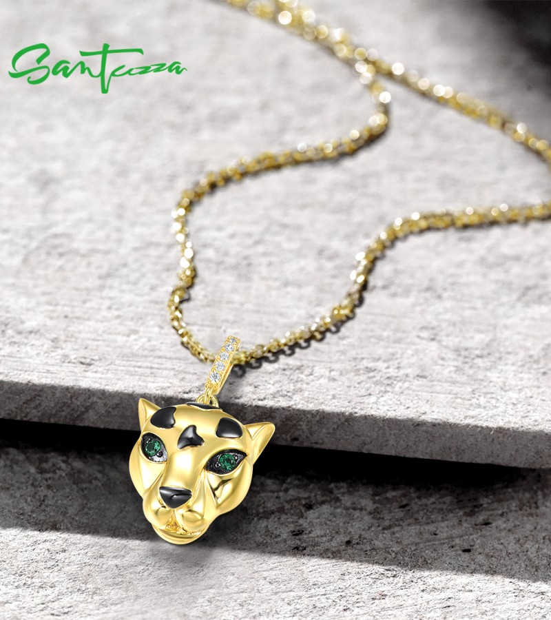 SANTUZZA 925 Sterling Silver Pendant Green Spinel White Zirconia Gold Color Leopard Jewelry