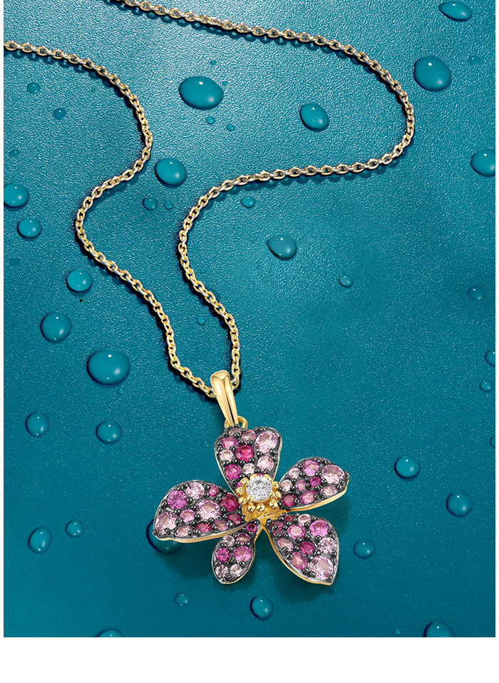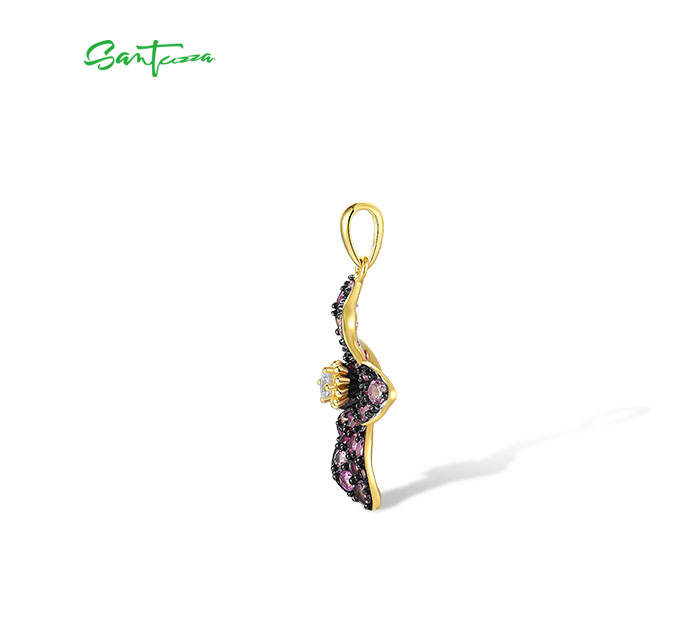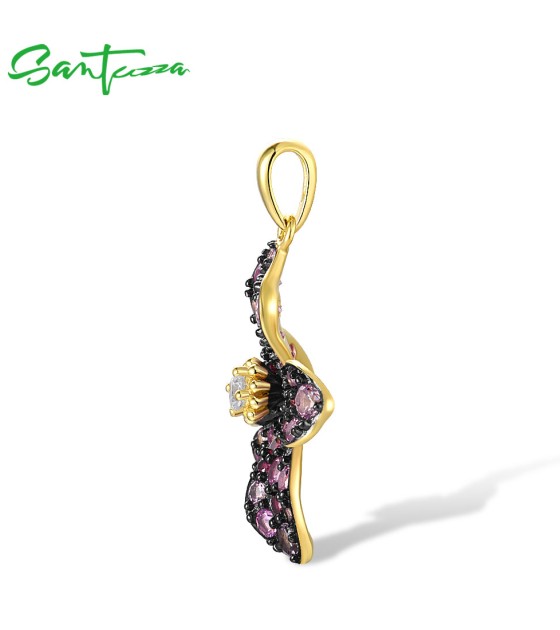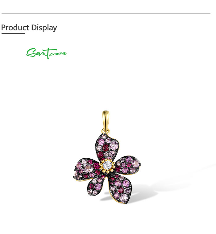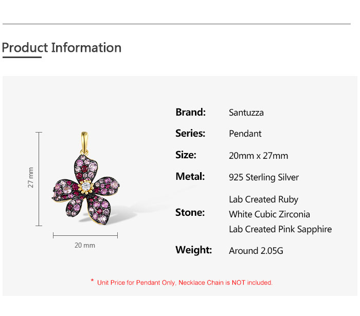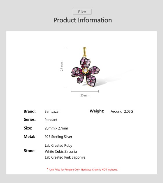 SANTUZZA 925 Sterling Silver Pendant Created Ruby Pink Flower White Cubic Zirconia Jewelry