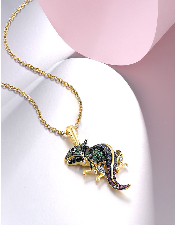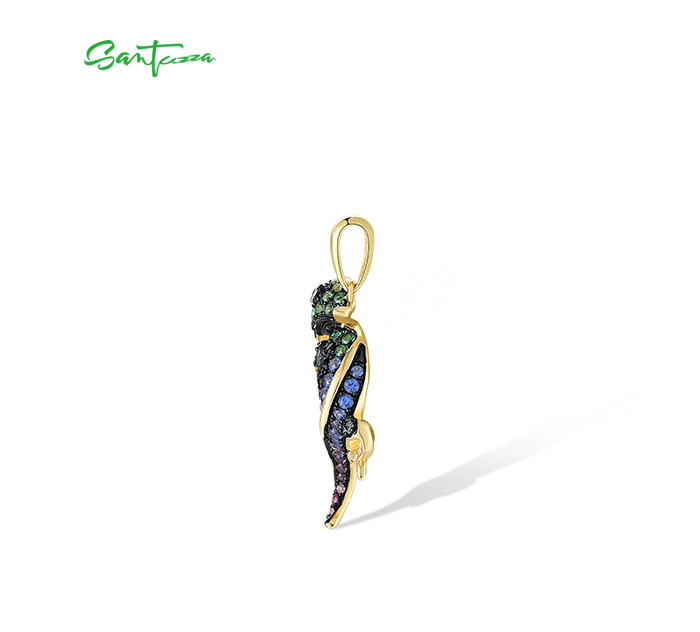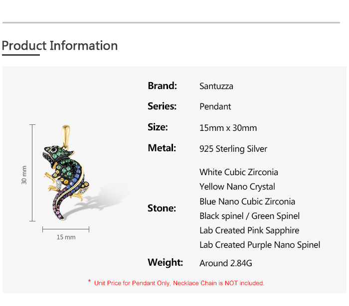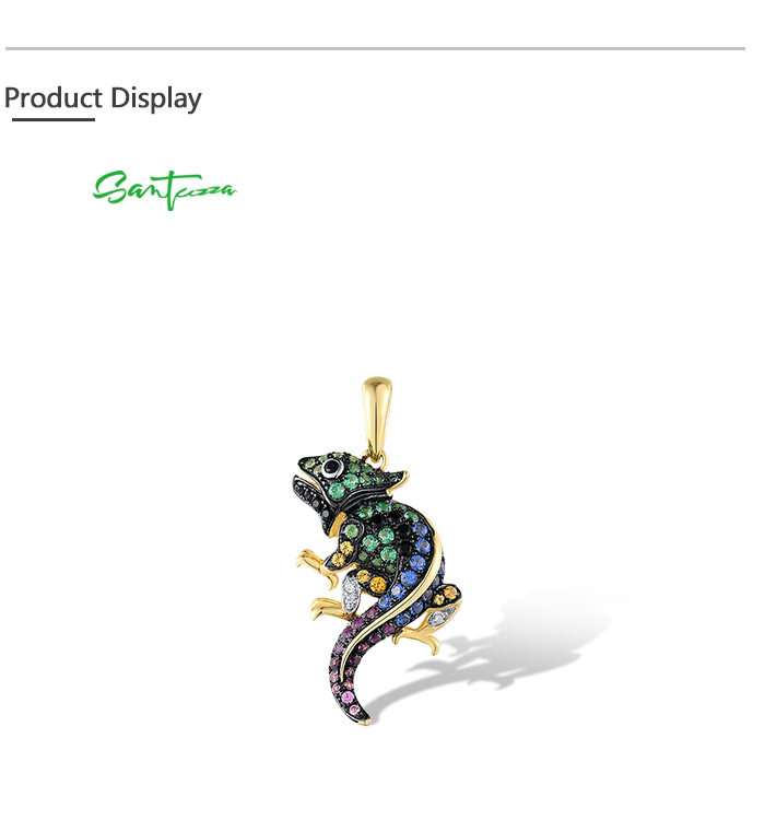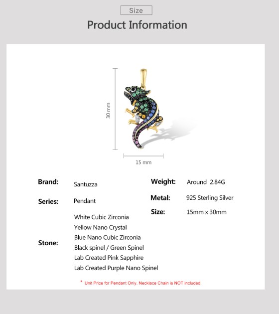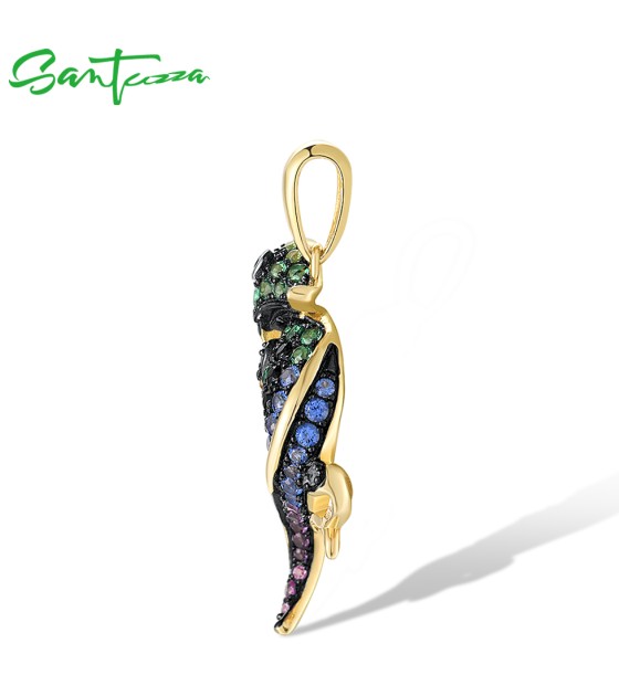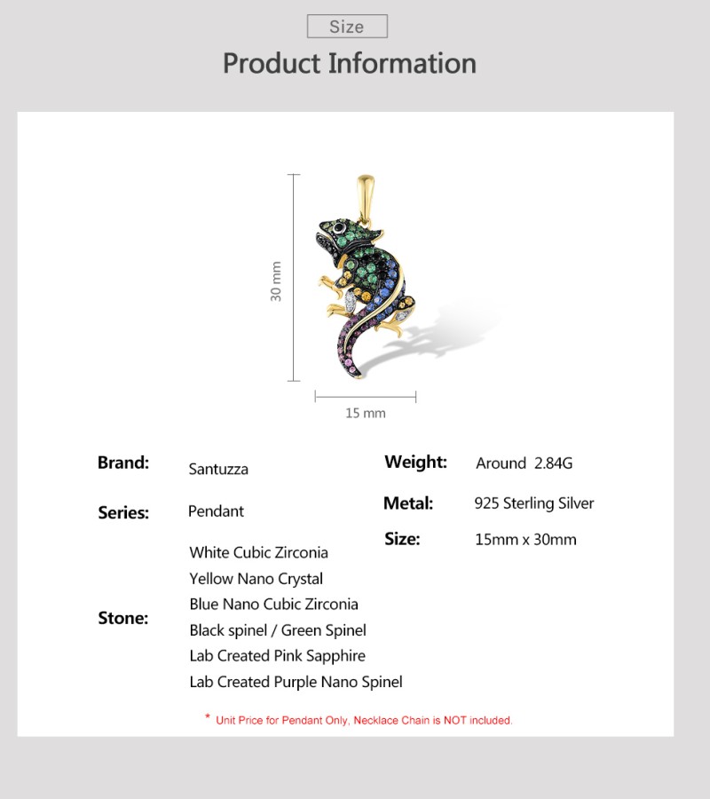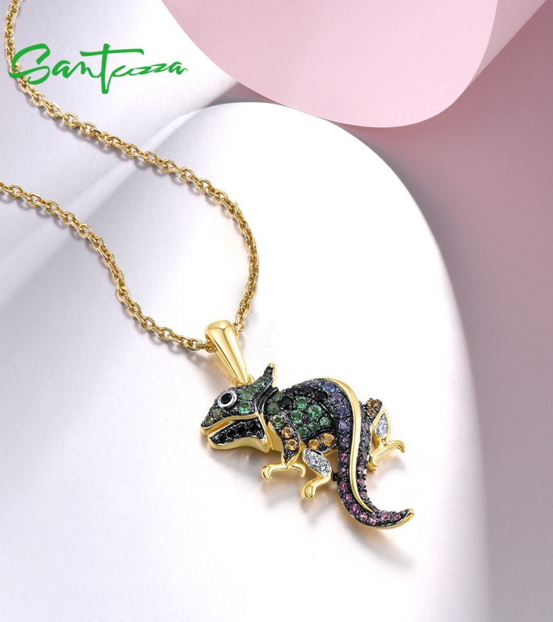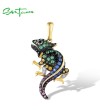 SANTUZZA Genuine 925 Sterling Silver Pendant for Women Sparkling Colorful Gems Lovely Chameleon Animal Elegant Fine Jewelry