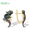 SANTUZZA 925 Sterling Silver Earrings Multi Color Gems Chameleon Animal Fine Jewelry