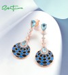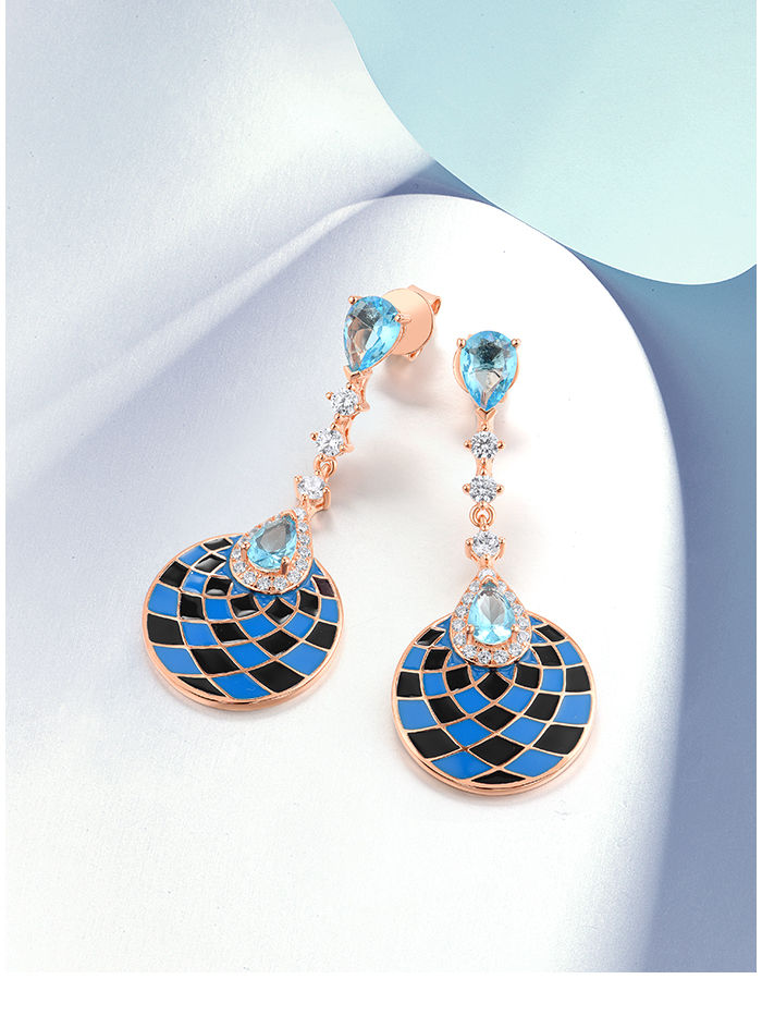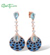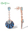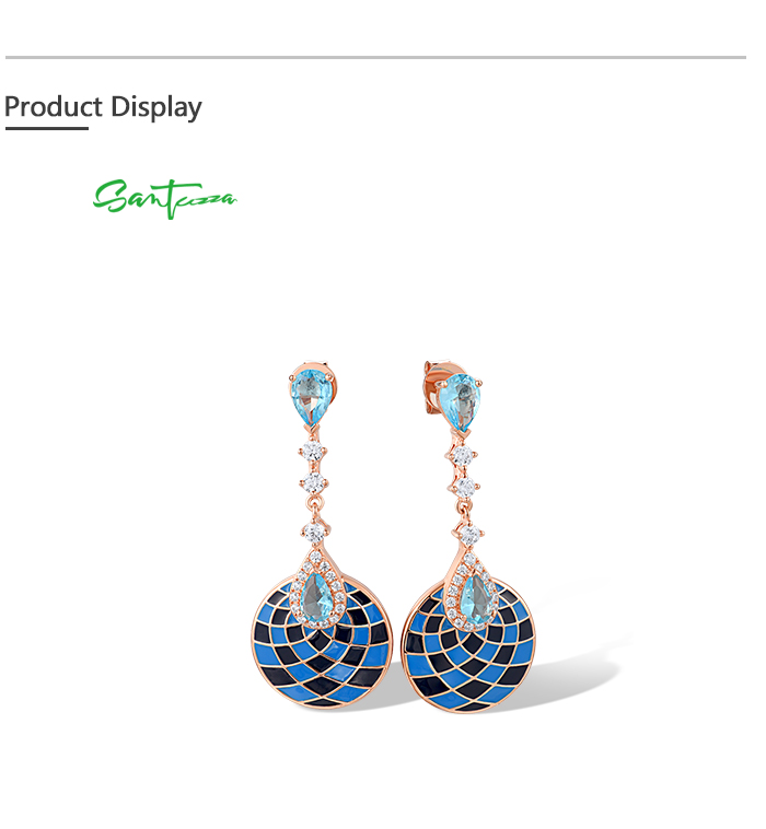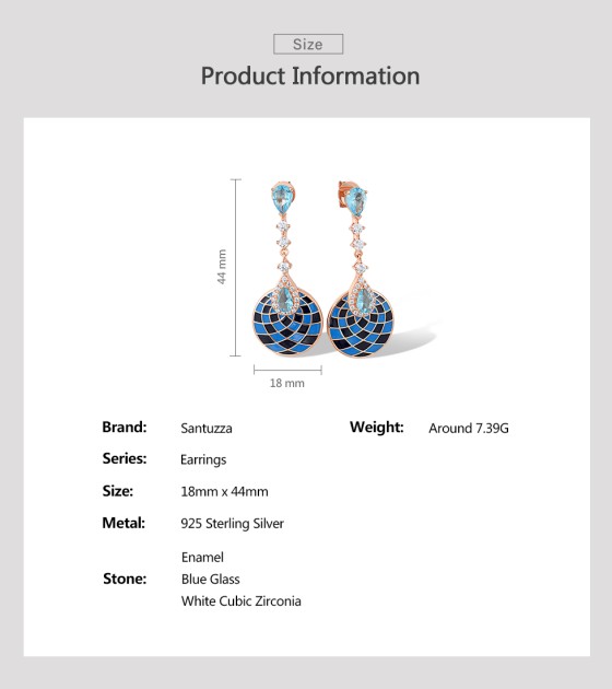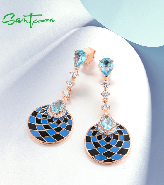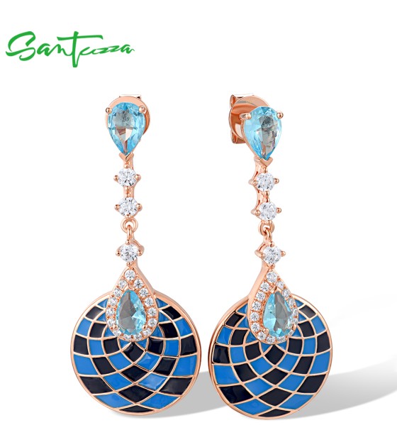 SANTUZZA 925 Sterling Silver Drop Earrings White CZ Blue Stone Grid Enamel Fine Jewelry