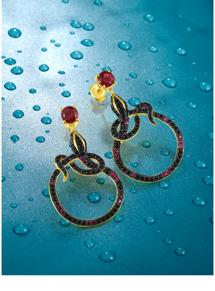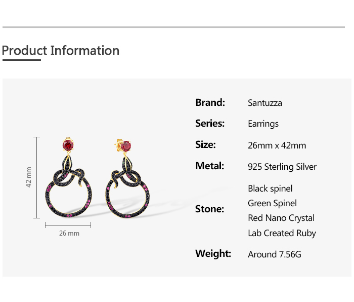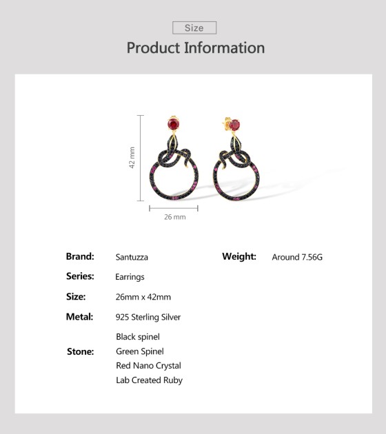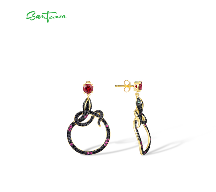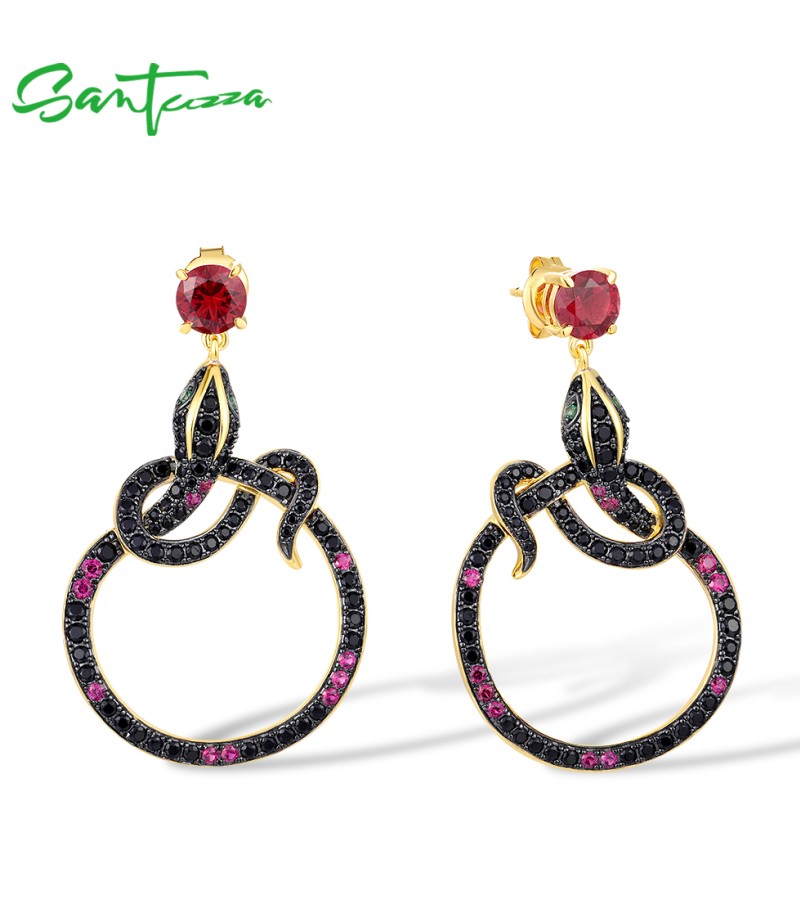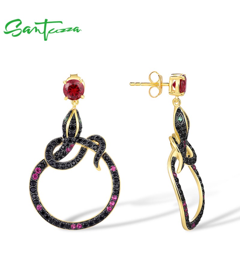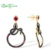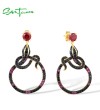SANTUZZA 925 Sterling Silver Stud Earrings Black Spinel Created Ruby Snake Animal Jewelry