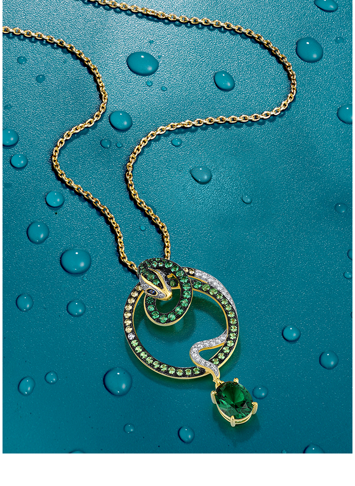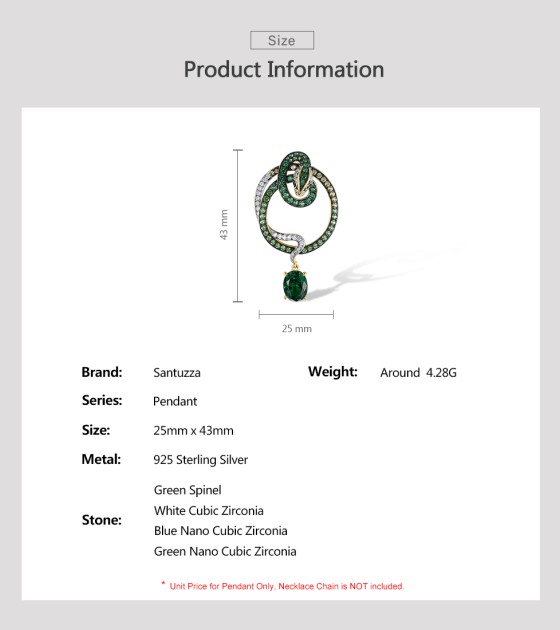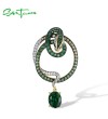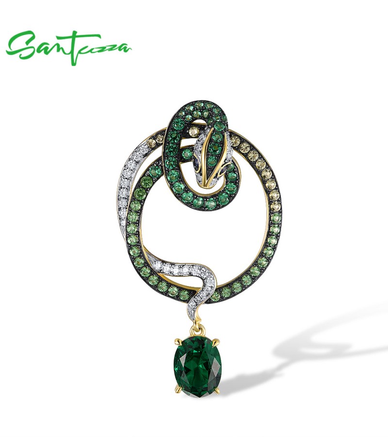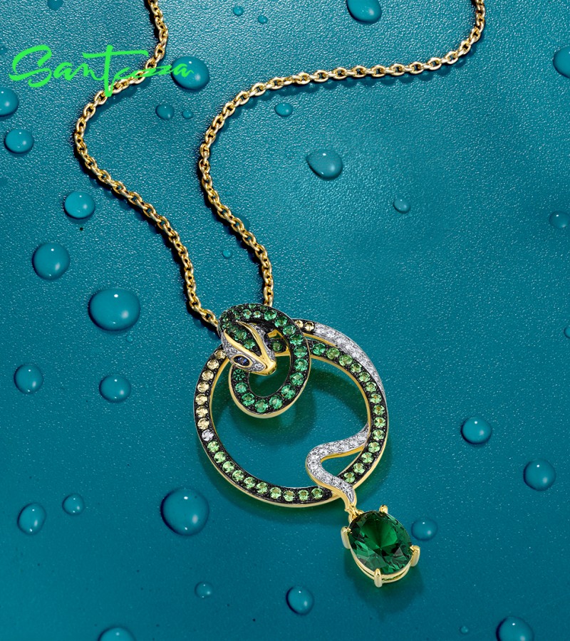 SANTUZZA 925 Sterling Silver Pendant Sparkling Black Green Spinel Snake Safari Animal Jewelry