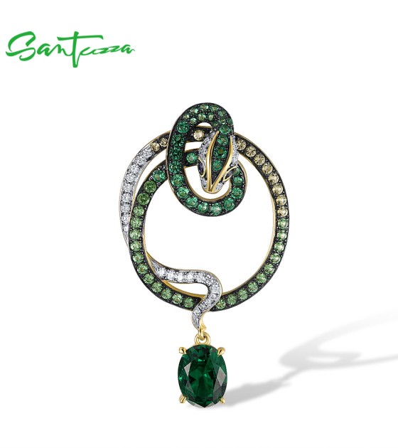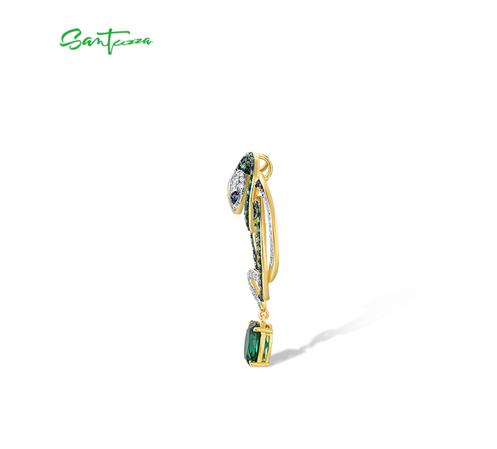 SANTUZZA 925 Sterling Silver Stud Earrings Green Spinel White CZ Ombre Snake Safari Jewelry
