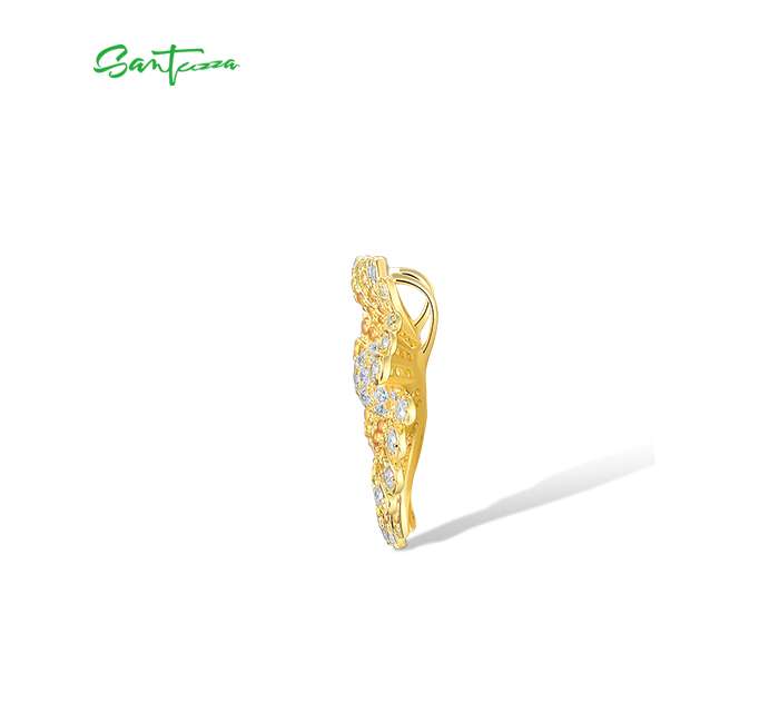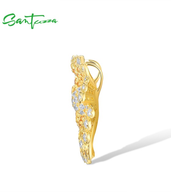 SANTUZZA 925 Sterling Silver Earrings Yellow Nano Crysta White CZ Sun Flower Earrings Jewelry