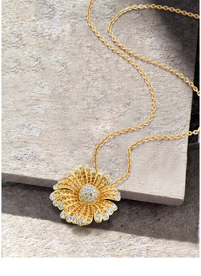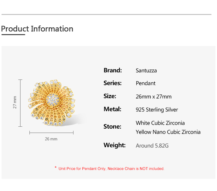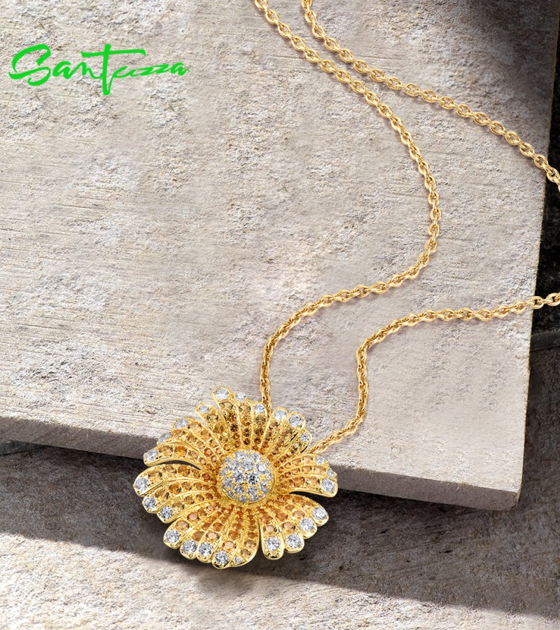 SANTUZZA 925 Sterling Silver Pendant Yellow Nano Crysta Sun Flower Jewelry