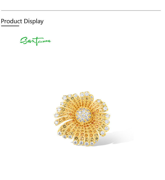 SANTUZZA 925 Sterling Silver Rings Yellow Nano Crystal Sun Flower Jewelry - US 9