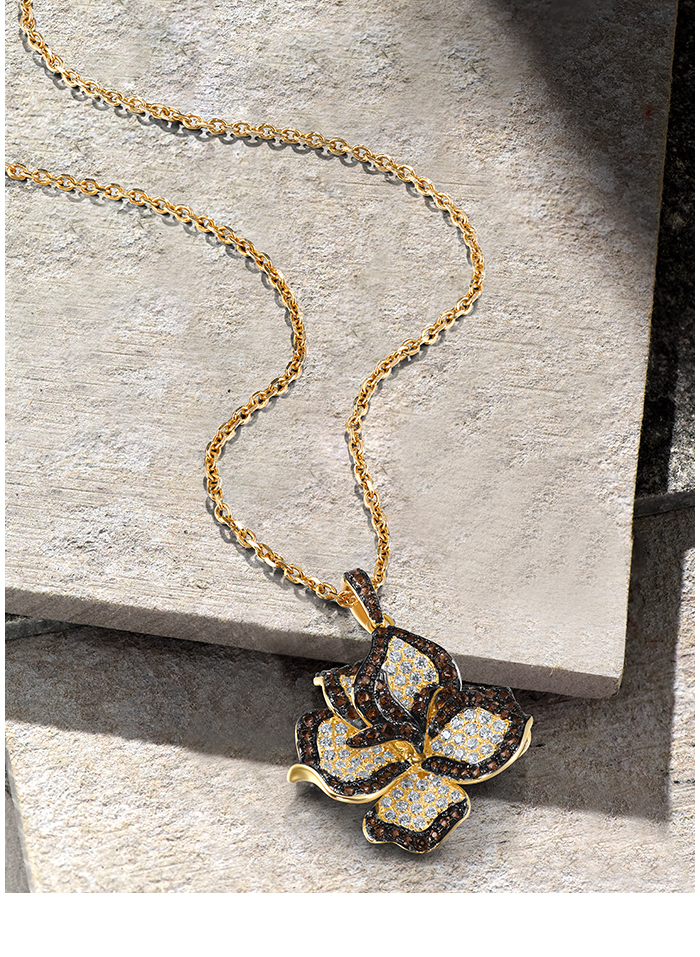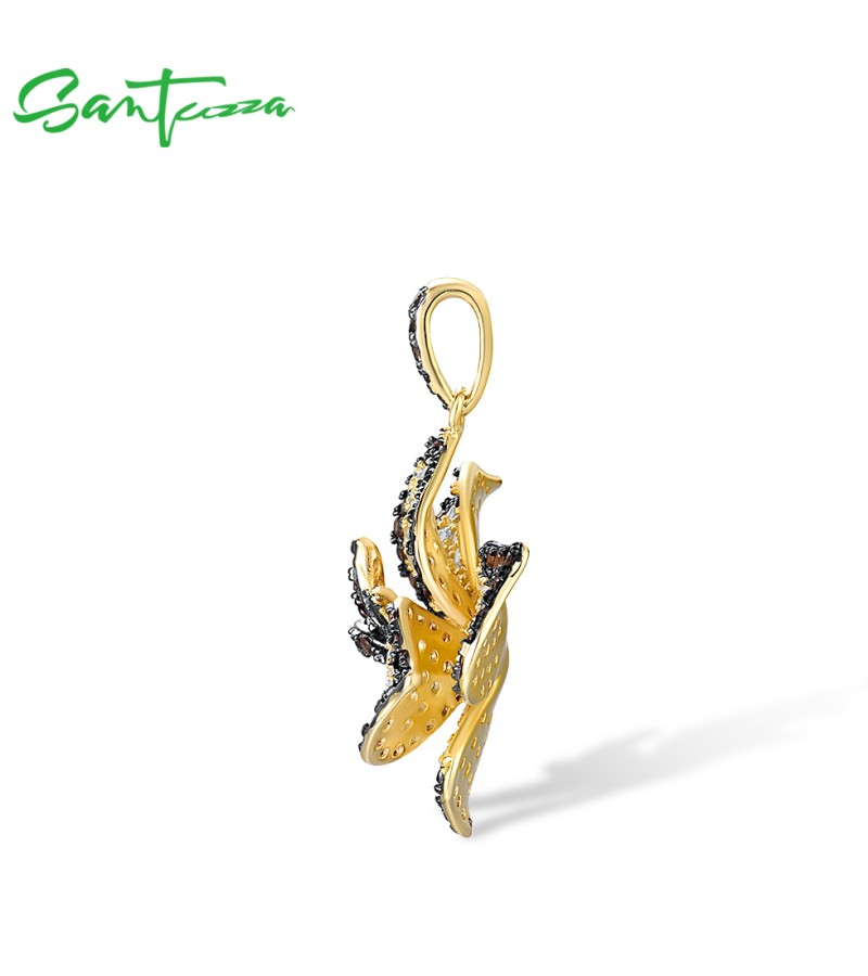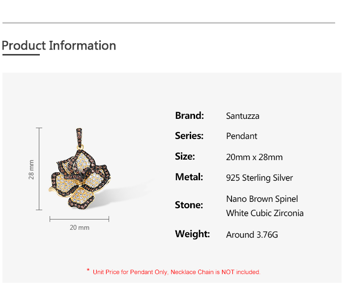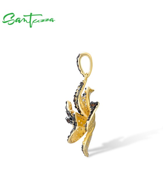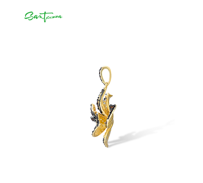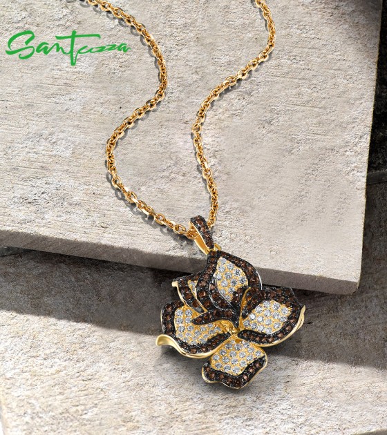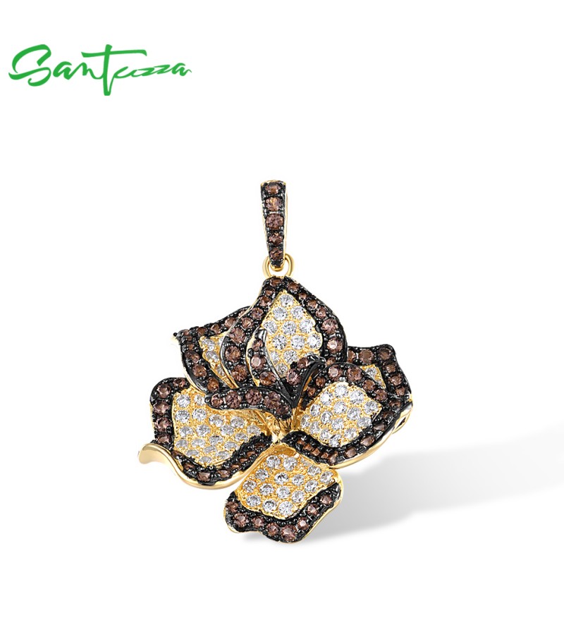 SANTUZZA 925 Sterling Silver Pendant White CZ Brown Spinel Orchid Flower Fine Jewelry
