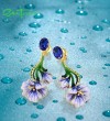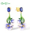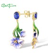 SANTUZZA 925 Sterling Silver Stud Earrings Blue Spinel Enamel Flower Jewelry