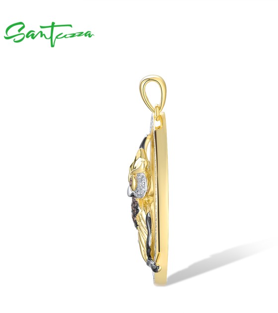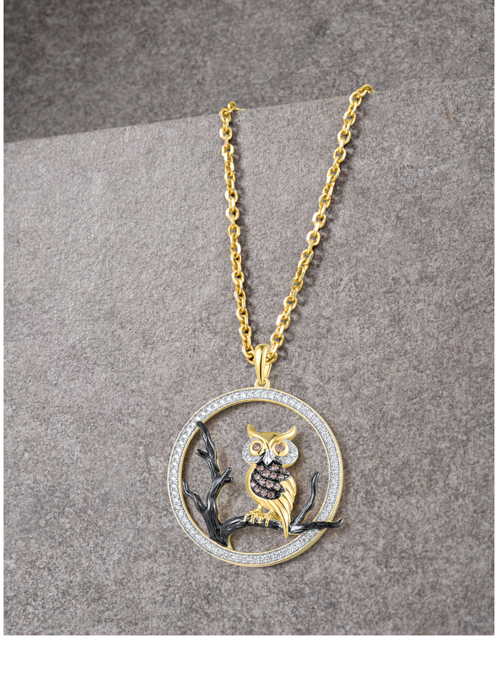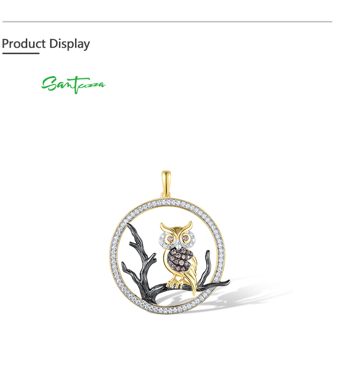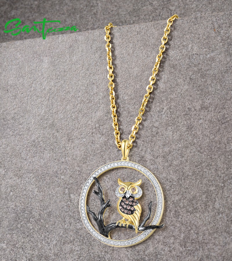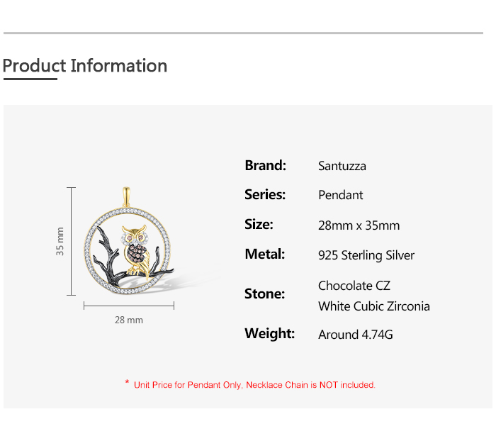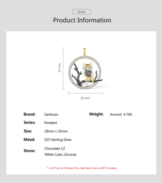 SANTUZZA 925 Sterling Silver Pendant White Chocolate CZ Owl Animal Fine Jewelry