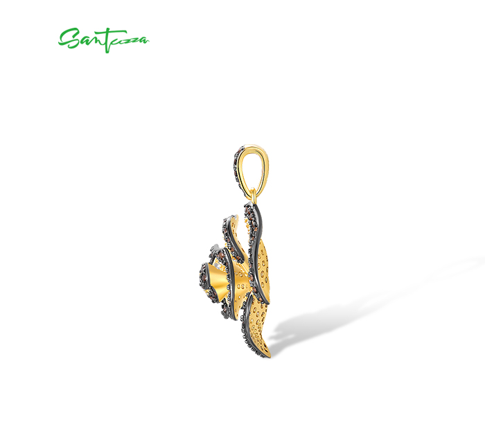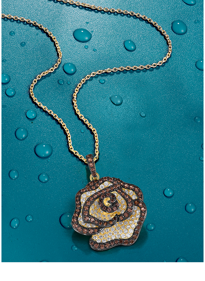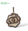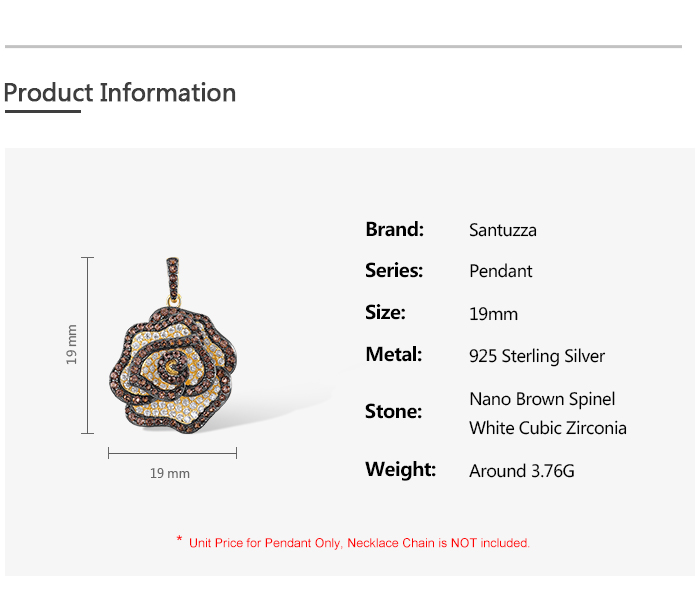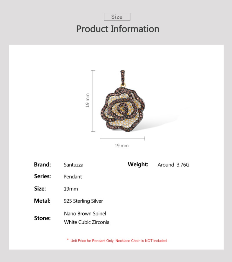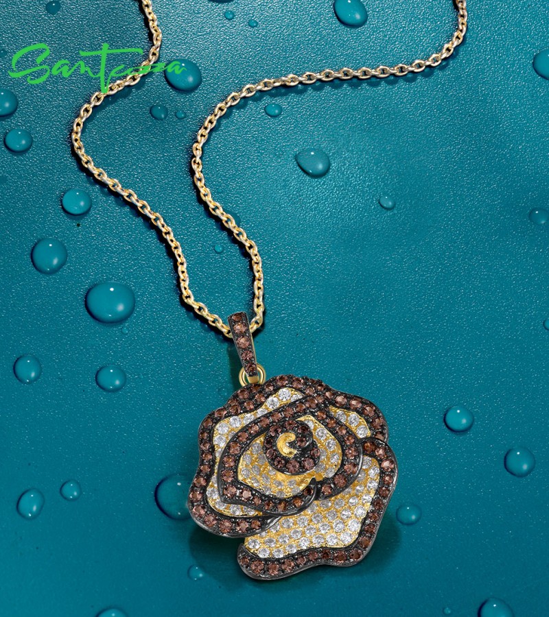 SANTUZZA 925 Sterling Silver Pendant White CZ Brown Spinel Rose Flower Fine Jewelry