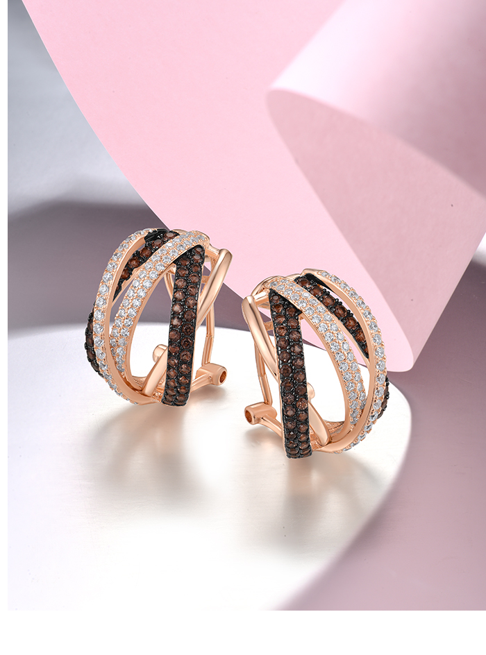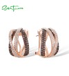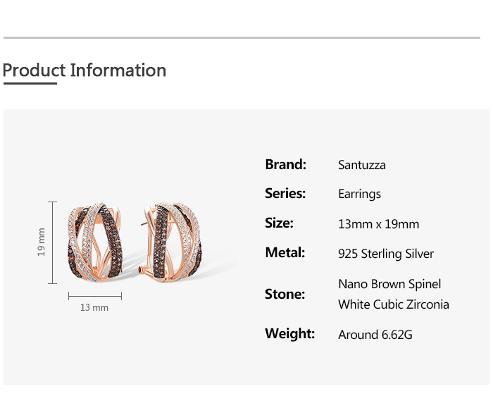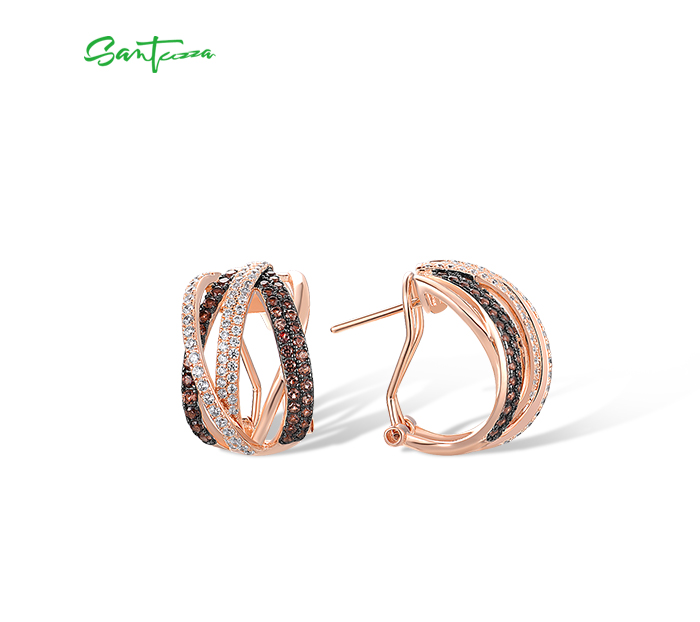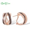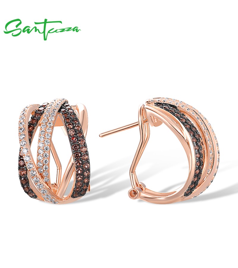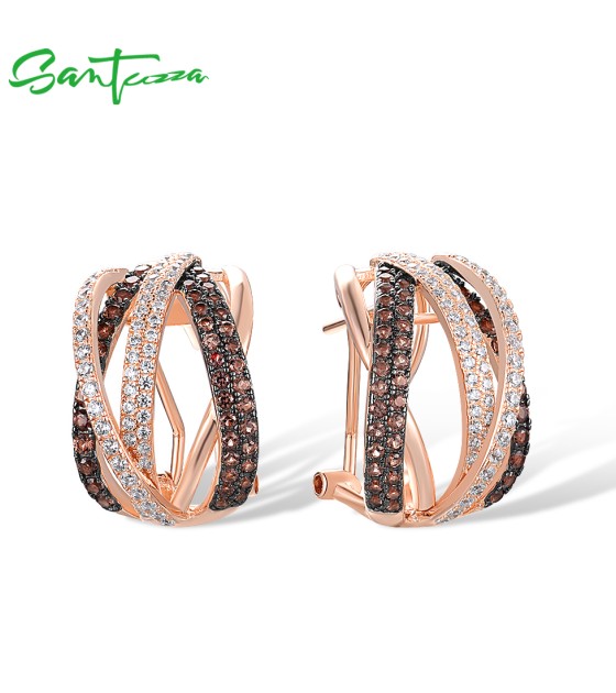 SANTUZZA 925 Sterling Silver Earrings Nano Brown Spinel White CZ Stud Cross Stylish Jewelry