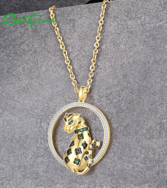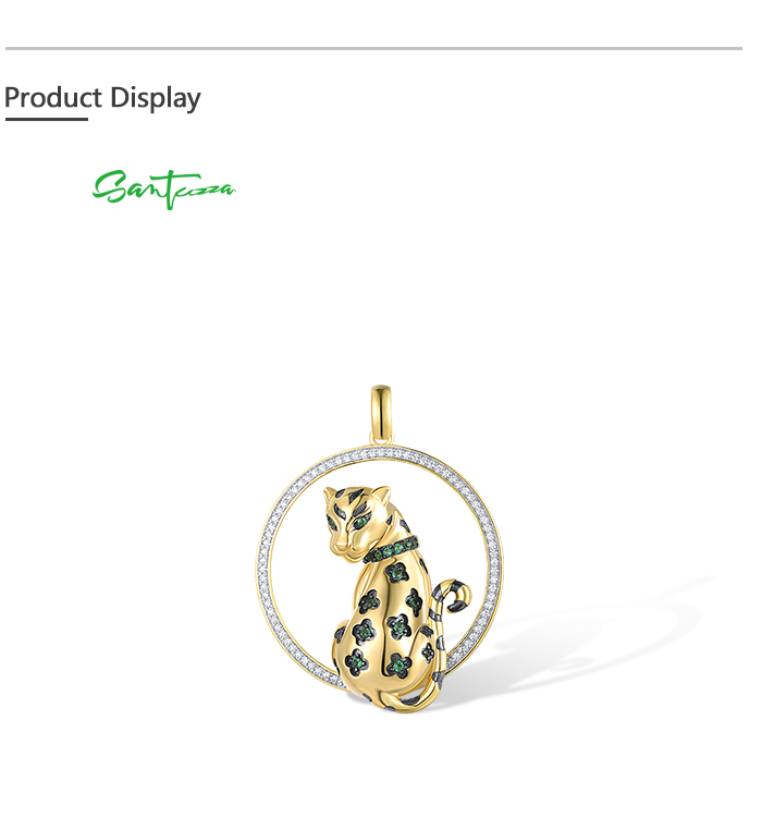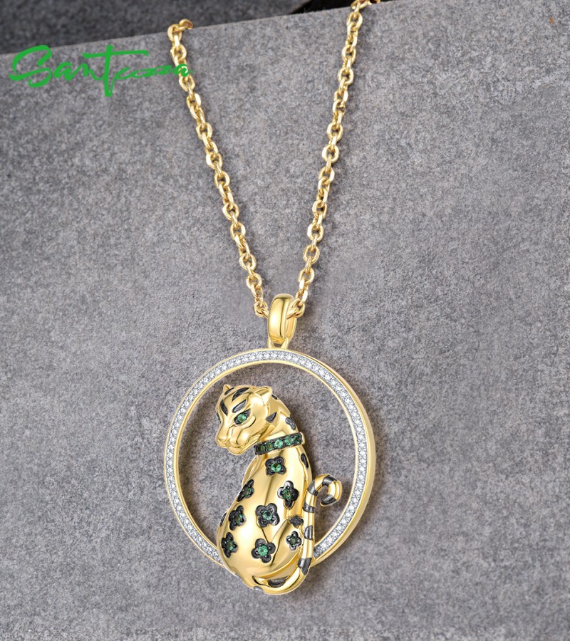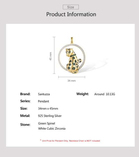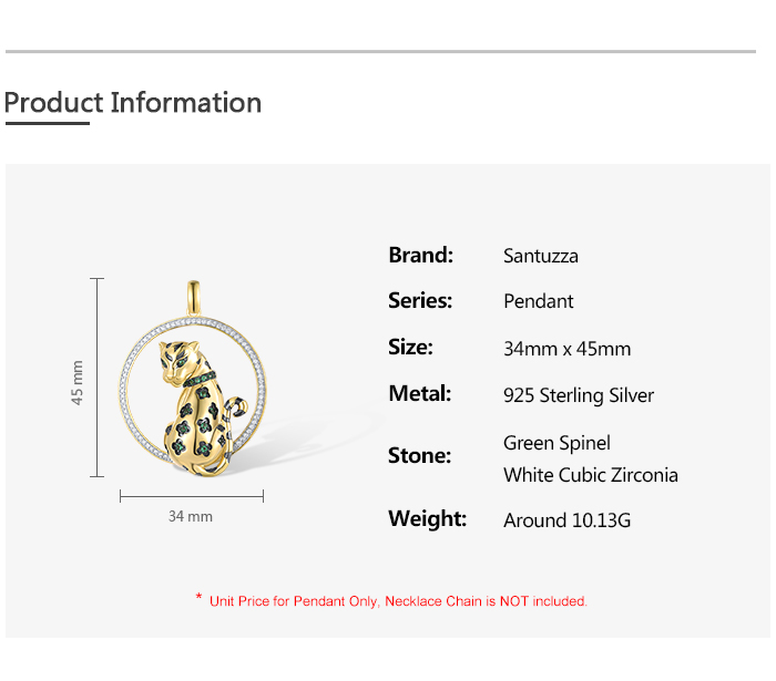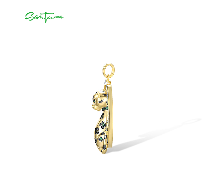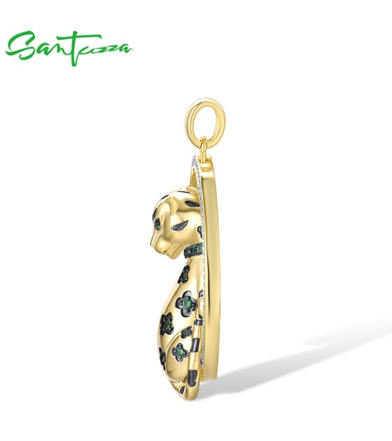 SANTUZZA 925 Sterling Silver Pendant White CZ Green Spinel Lapard Fine Jewelry