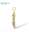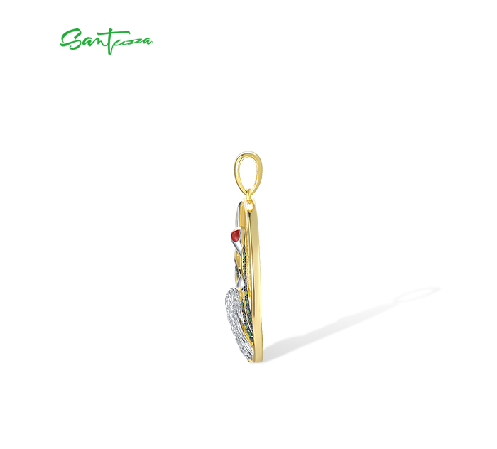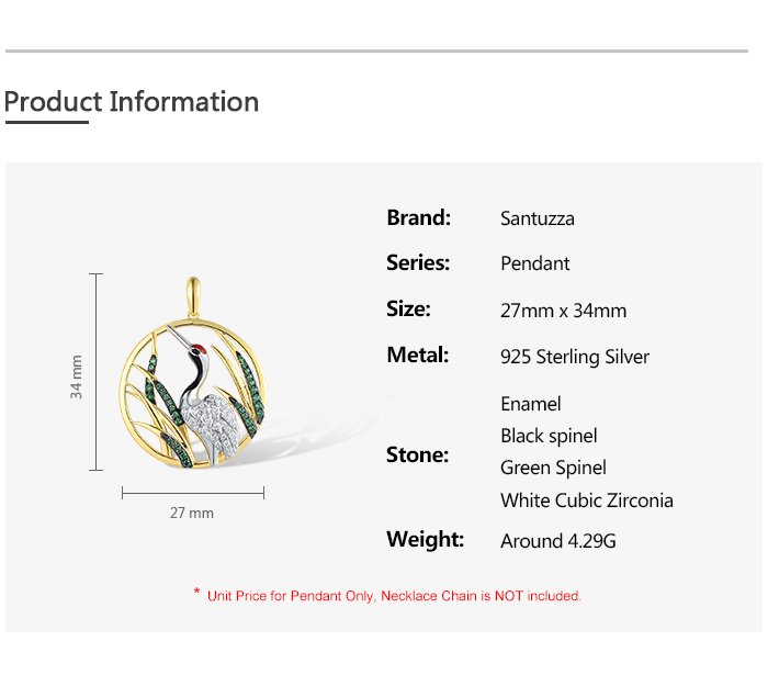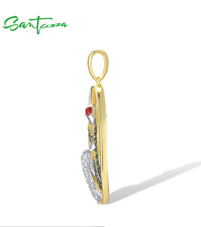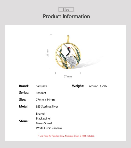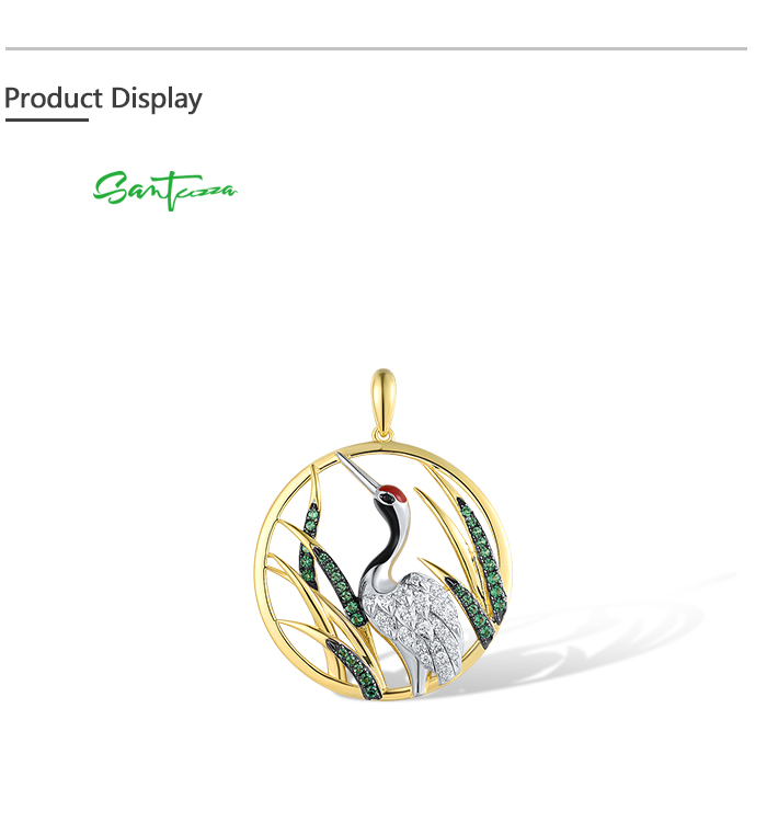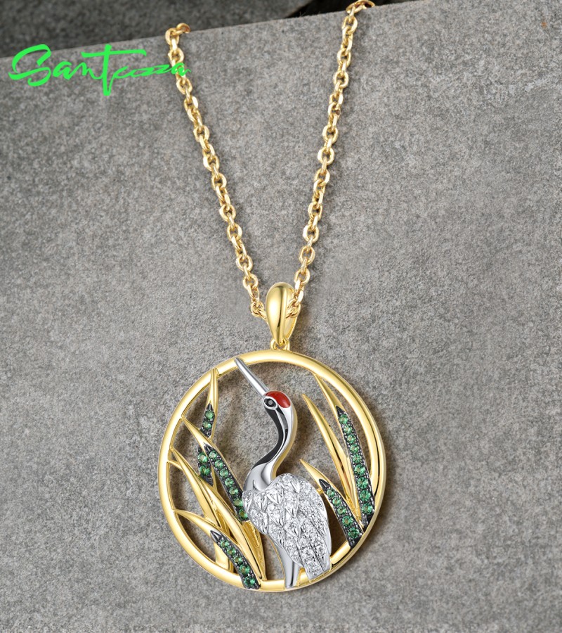 SANTUZZA 925 Sterling Silver Pendant White CZ Green Spinel Red-Crowned Crane Fine Jewelry