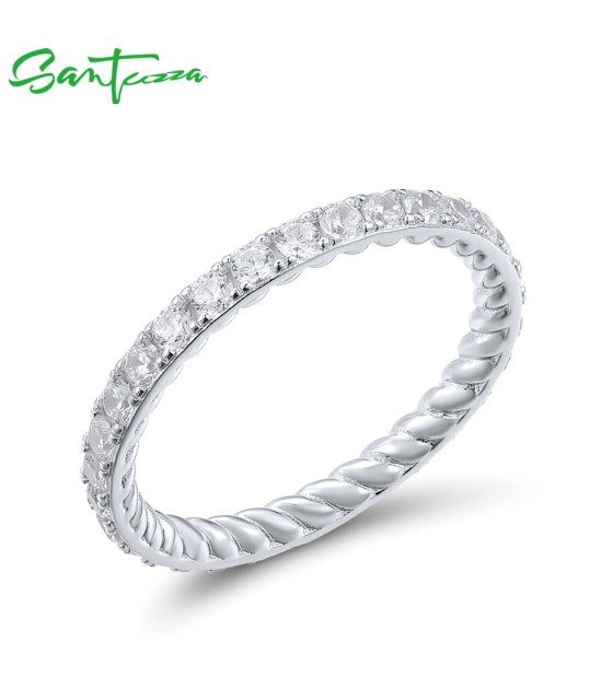 SANTUZZA 925 Sterling Silver Rings For Women White Cubic Zirconia Stackable Eternity Fine Jewelry